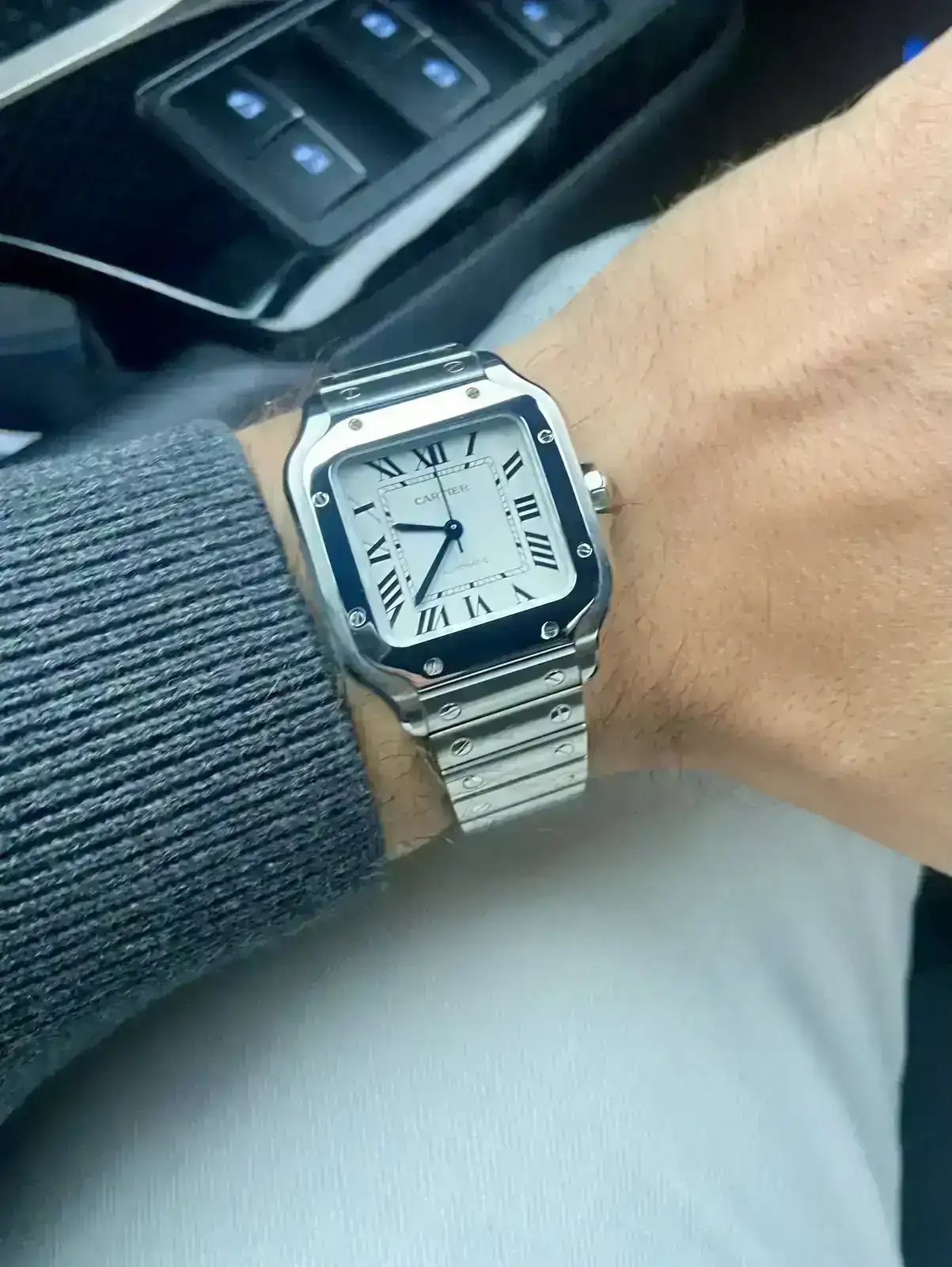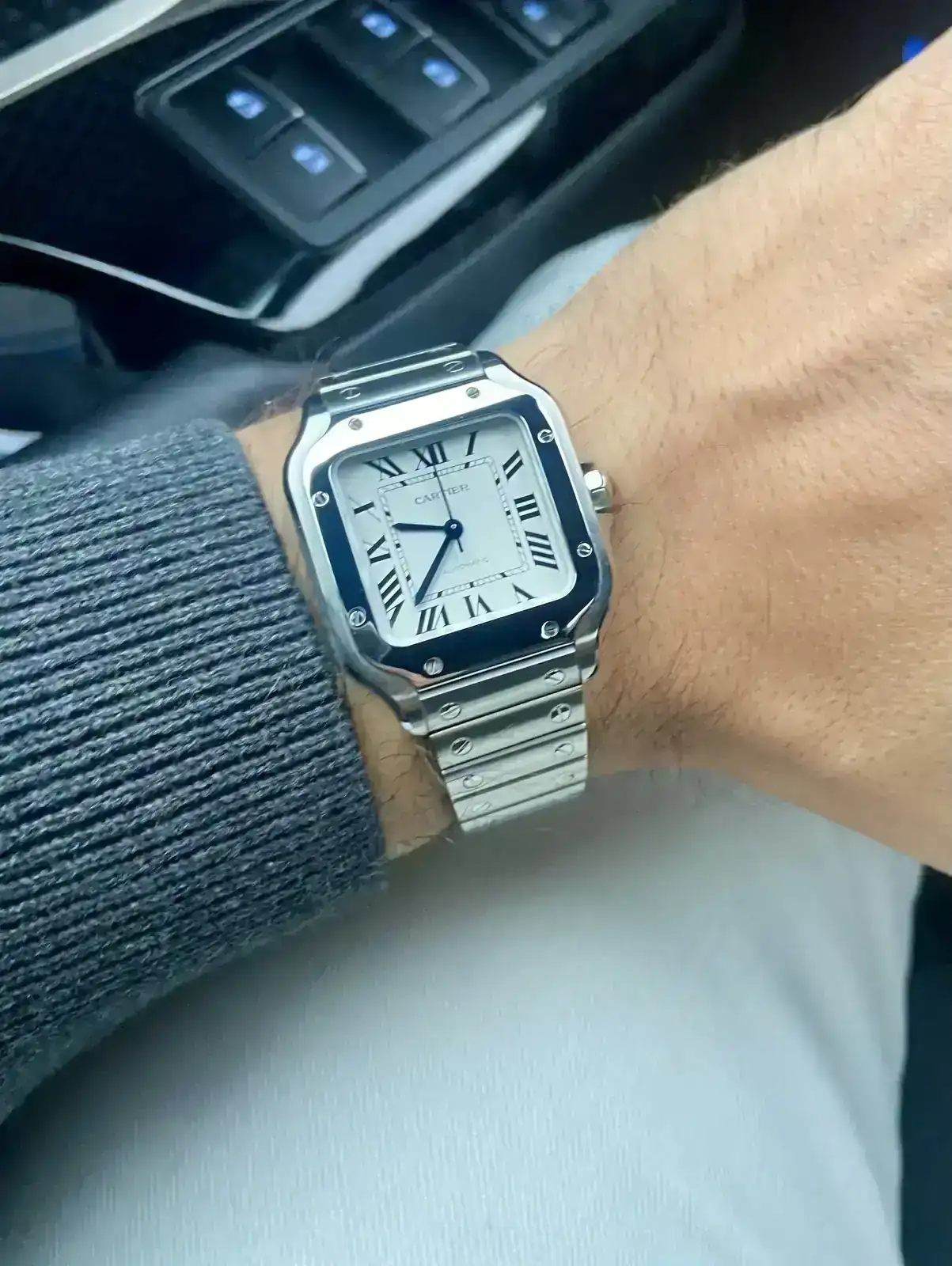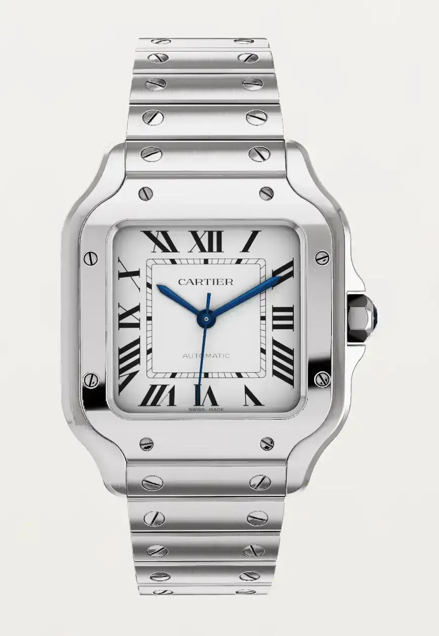 Mientras espero indefinidamente, veo fotos aquí y en otros sitios y a falta de verlo en vivo, me hace cada vez más tilín el Cartier Santos. La versión mediana de 35mm cuesta curiosamente lo mismo. Aquí pongo foto de los dos. Por el mismo dinero, ¿qué opción elegís?