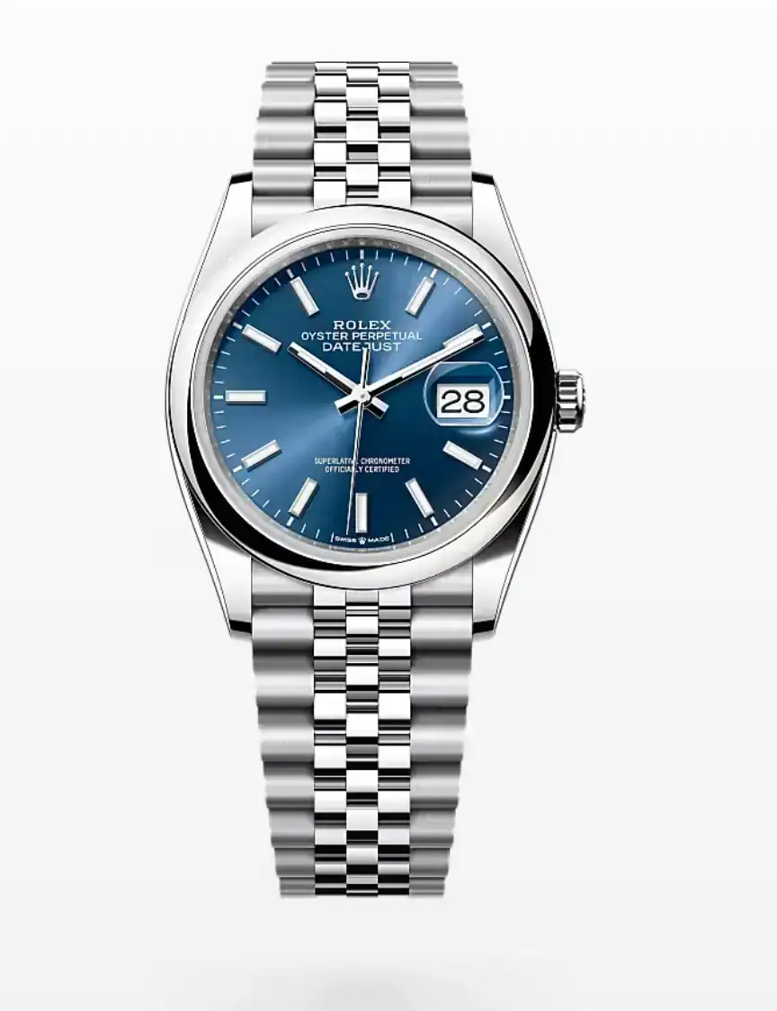 Hola a todos. Estoy apuntado en la lista para un Rolex DateJust de 36mm con bisel liso, brazalete jubilee y esfera azul. Tras la subida son 8200€.