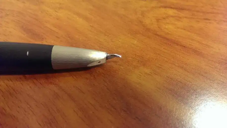 No se como ha podido suceder, pero esta mañana en la oficina se me ha caido una Lamy 2000, que compré hace pocos meses a través de Ebay a Regina Martini, desde una altura más o menos de un metro. Con tan mala fortuna de que ha caido de punta, doblandose el plumín y quedando a mis ojos inexpertos bastante dañado.