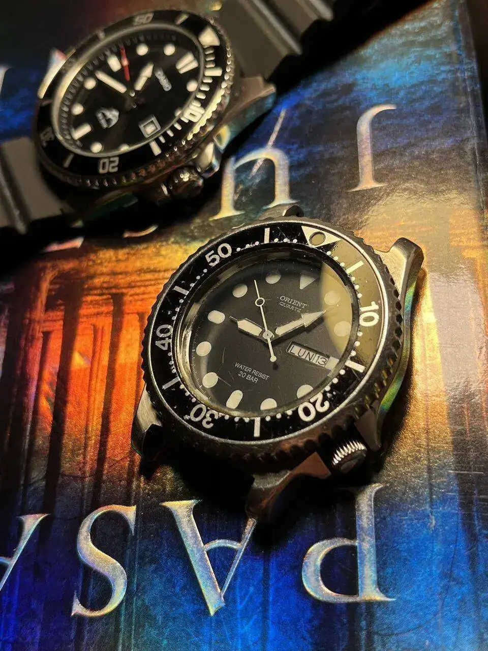 Leyendo en foros, este incluído, se hablada de Citizen de cuarzo, algun foro menos experto de Seiko (descartadisimo)… y en un foro algo especializado leí un post que jamás volví a encontrar argumentando por qué era un Orient Quartz 20atm.