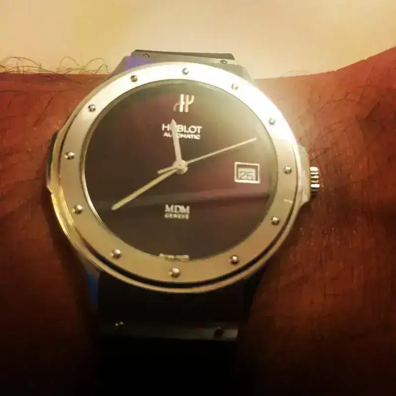 Como ya comenté en un hilo anterior me surgió la oportunidad de tener un Hublot Classic de 39mm bueno pues he tenido suerte al final ayer me lo regalaron mi mujer y mis hijos aprovechando que era mi cumple .No me erróllo más hay va una foto sólo decir que puesto queda impresionante .