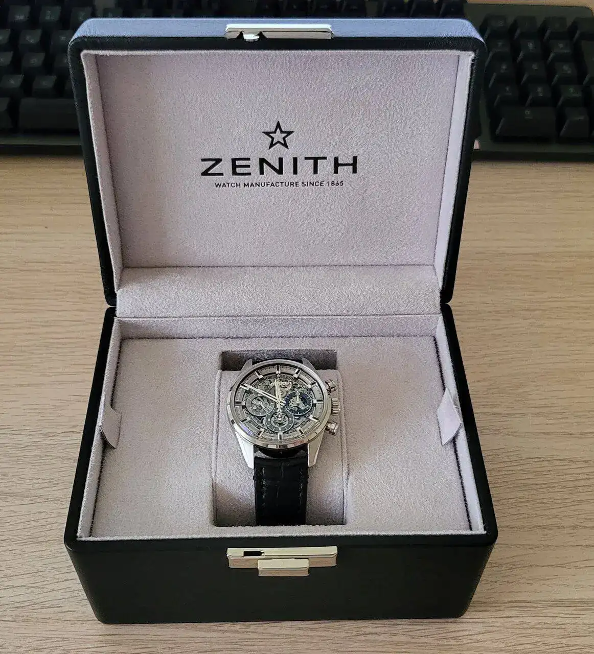 Siempre, desde que me enteré que había relojes que valían más de 20.000 pelas allá por 1997, he deseado tener un El Primero. Me encanta por diseño, proporciones, historia, movimiento (esas 36.000vph...) pero incluso de segunda mano estaban por encima de lo que mi presupuesto podía asumir. Así que al encontrarme esta unidad, una versión que me encanta, en un precio asumible, lo consulté con la almohada un par de noches y tiré del gatillo... Hice la transferencia y al día siguiente, este pasado martes, fui a por el.