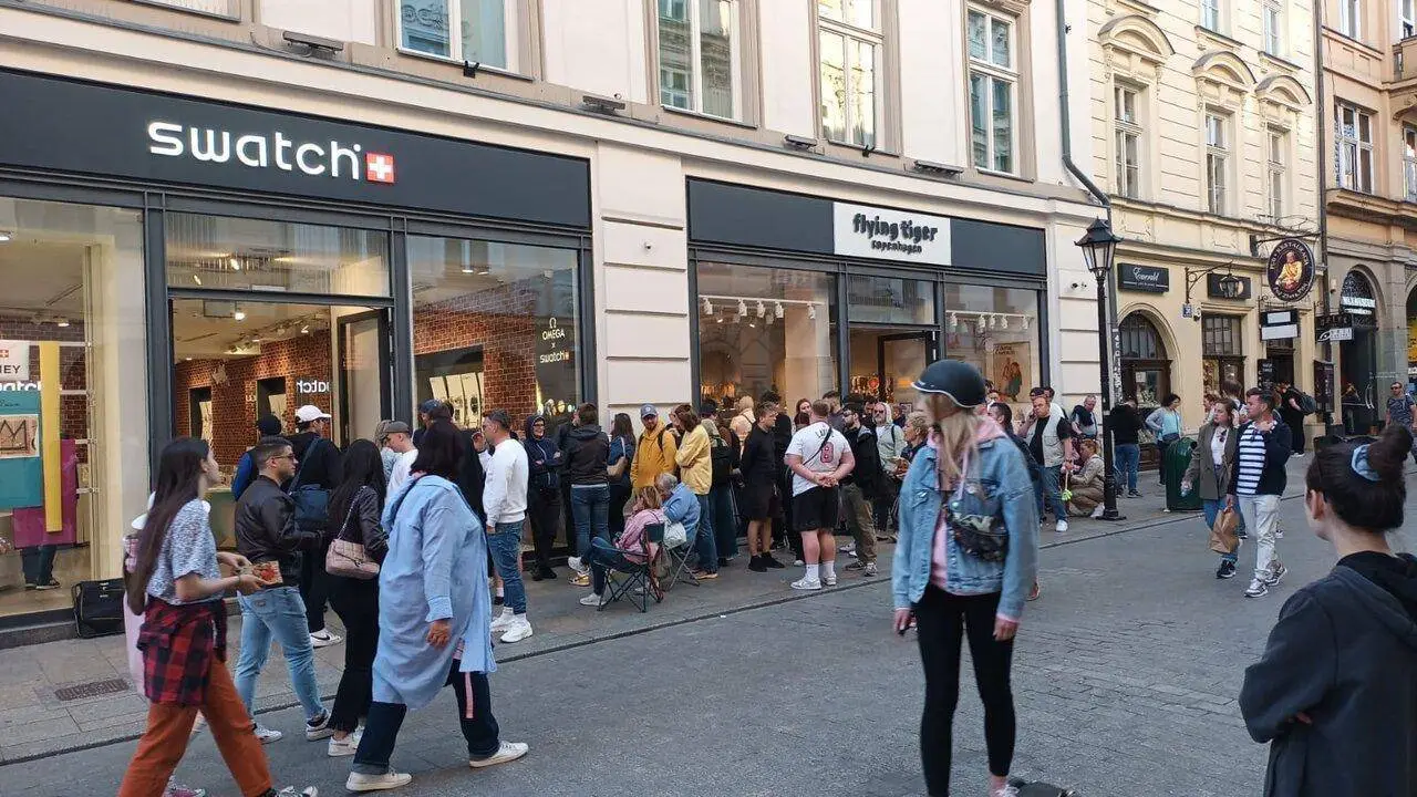 No creo que sea por el Moonswatch otra vez, no? Alguien sabe? Hasta con sillas plegables estaban