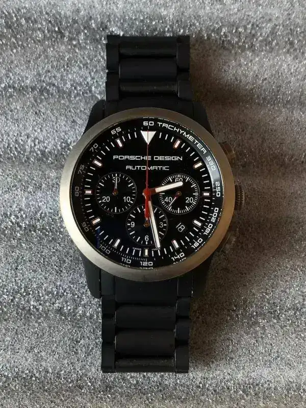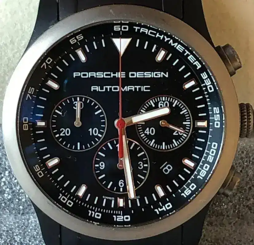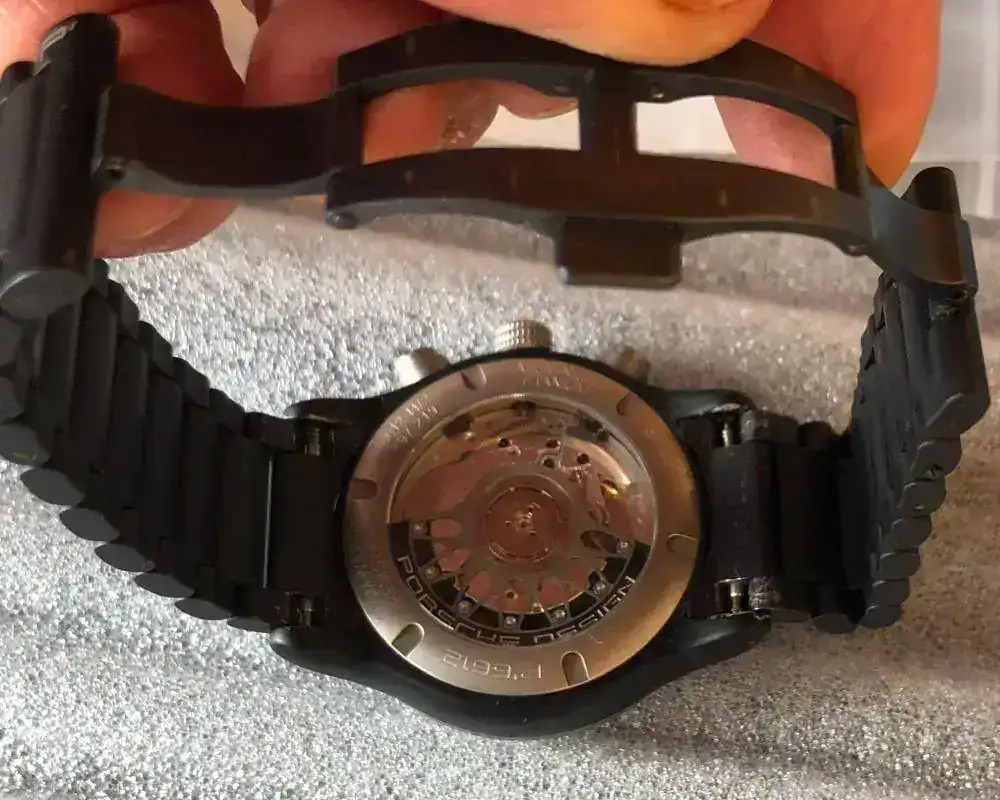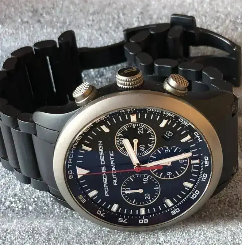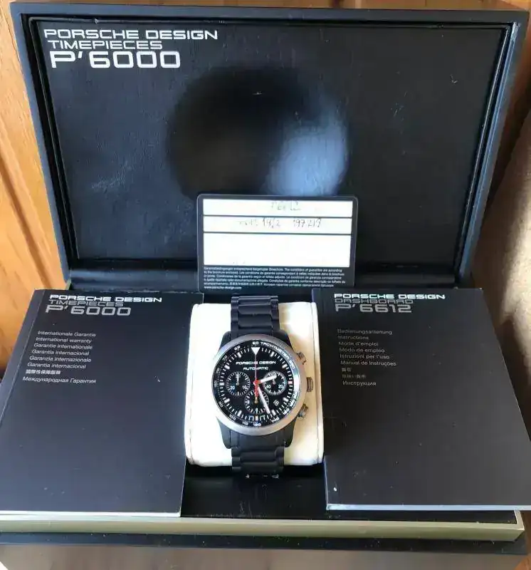 Hola, ponga a la venta este magnífico modelo de marca Porsche Desing Dashboard 6612, descatalogado en estado de Usado 90%, tiene pequeño desgaste asas detrás del brazalete de titanio debido al cambio de correas, funcionado a la perfeccion, pasada revisión en relojero de confianza hace dos años.