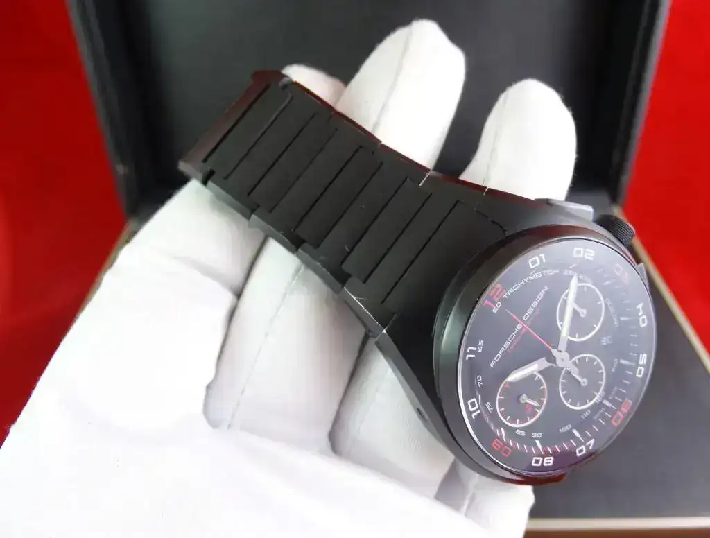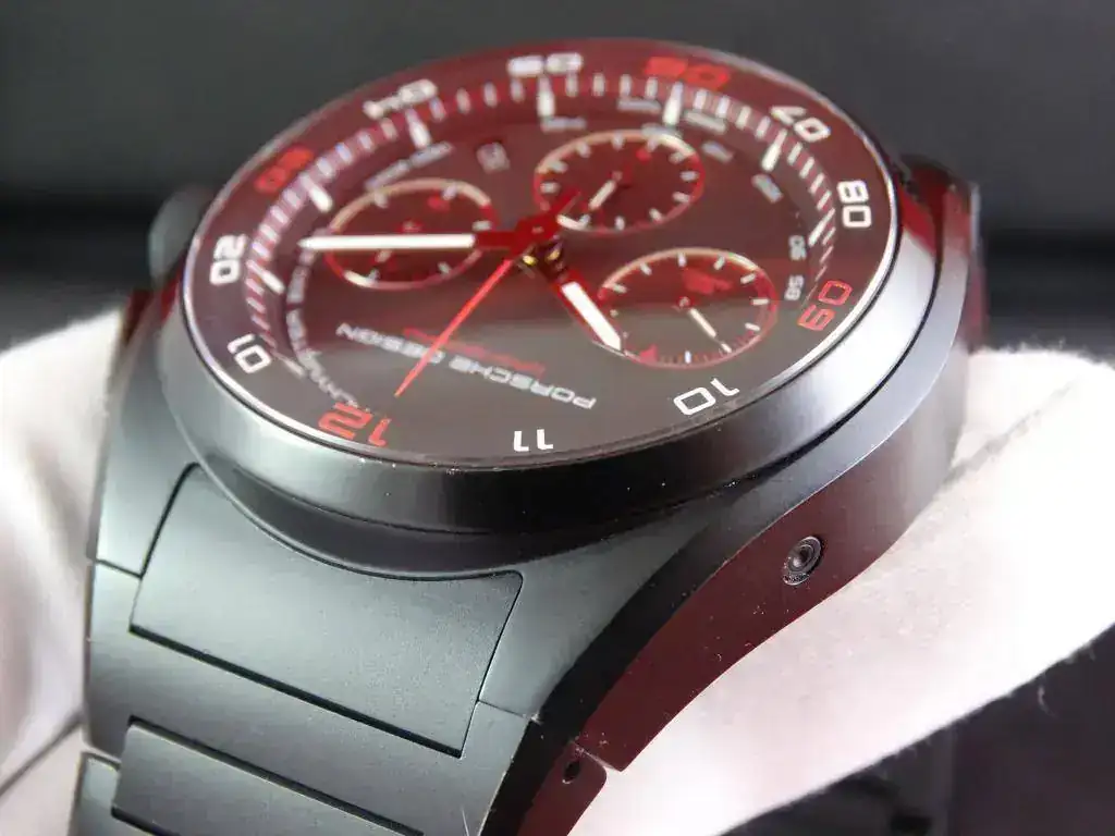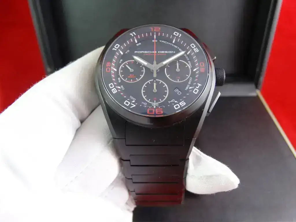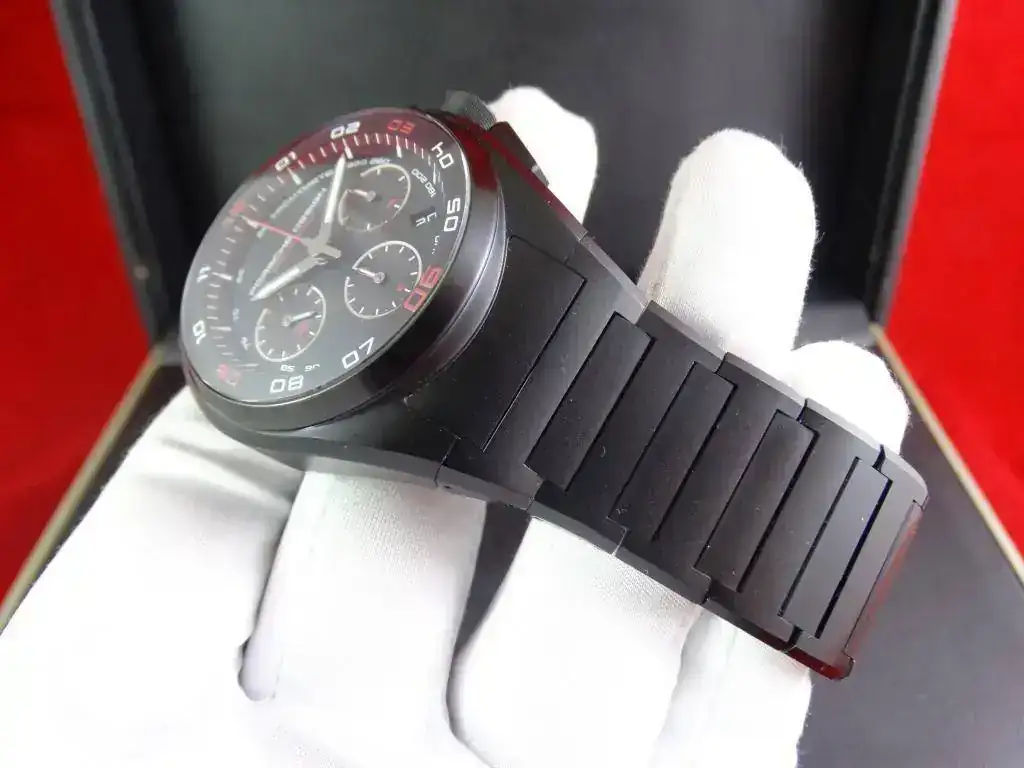 Proponemos hoy para venta o cambio un modelo muy deportivo: un cronógrafo con disposición clásica, de generoso tamaño y con apariencia todo negro (full-black, o tutto nero). El modelo Dashboard de PORSCHE DESIGN tiene una clara inspiración automovilística.