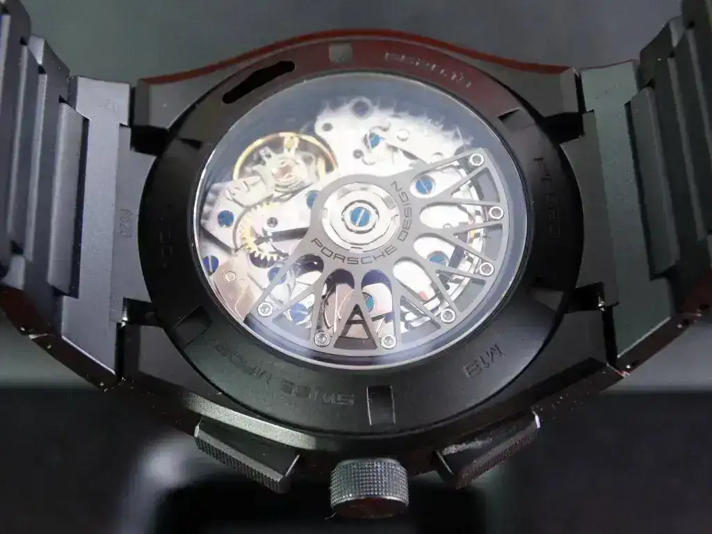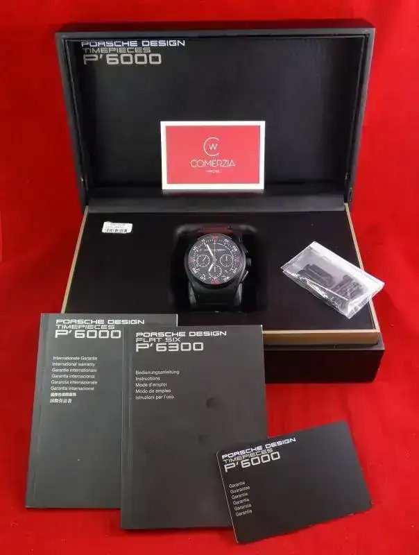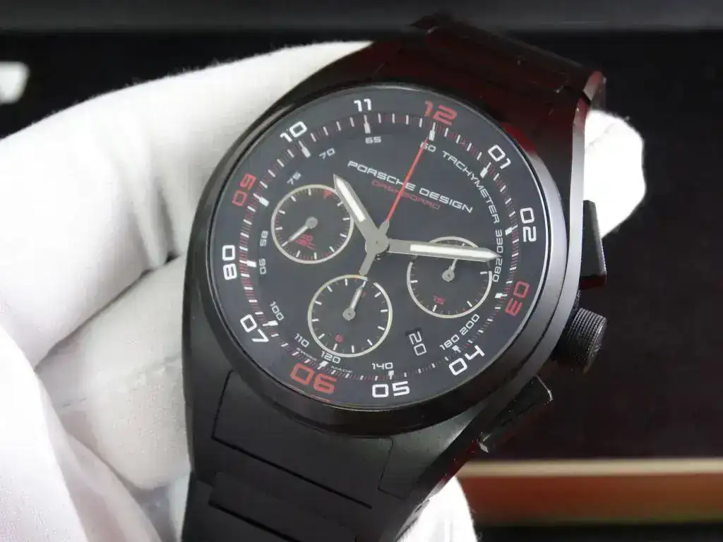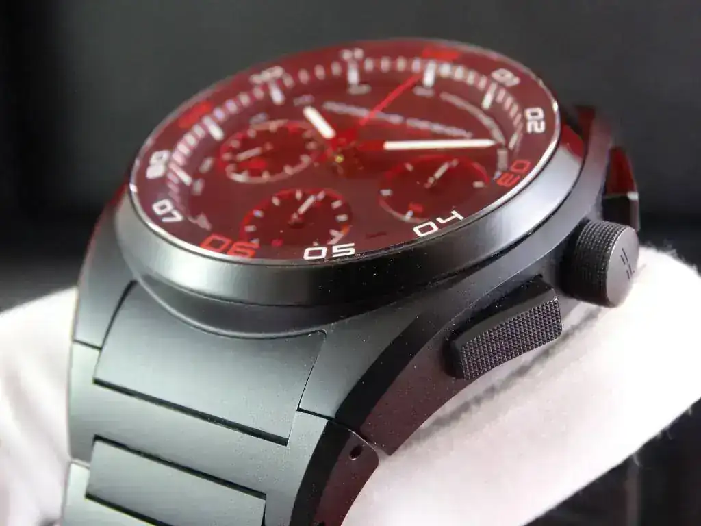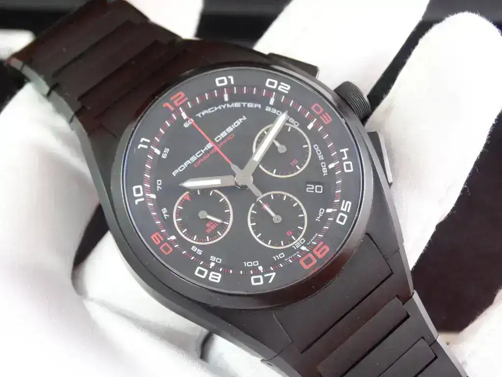 Proponemos hoy para venta o cambio un modelo muy deportivo: un cronógrafo con disposición clásica, de generoso tamaño y con apariencia todo negro (full-black, o tutto nero). El modelo Dashboard de PORSCHE DESIGN tiene una clara inspiración automovilística.