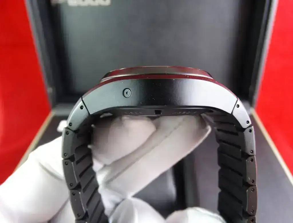 El reloj, como decíamos al principio, es grande. Su color negro refuerza este aspecto. Se ofrece con la dotación completa y, aunque no es un reloj nuevo, es casi imposible encontrar alguna señal de su uso, incluido el brazalete.