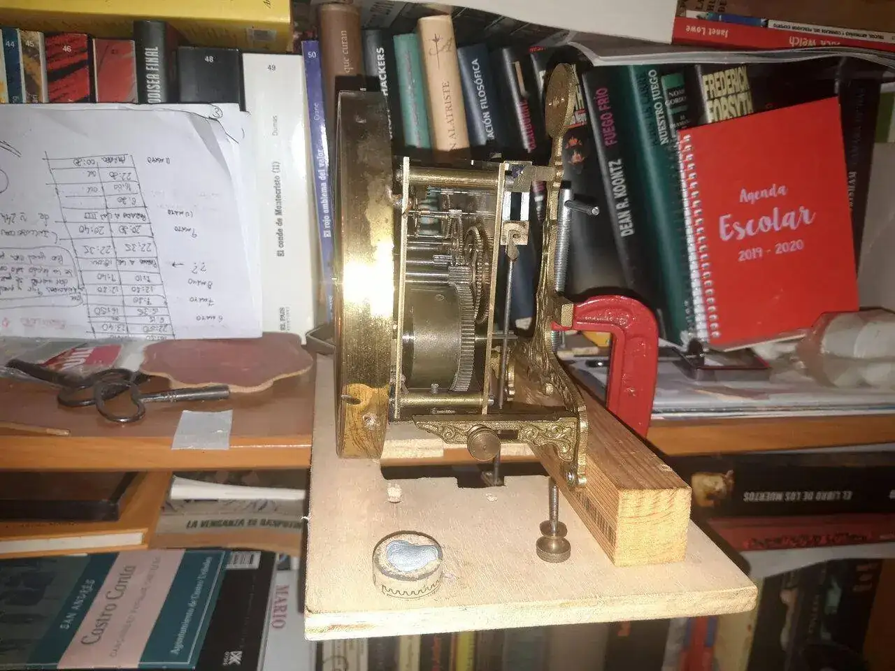 Ideal para mecanismos de diferentes tamaños, ya que nos da la opción de abrir o cerrar l las escuadras donde apoyar el mecanismo, tan solo con destornillar, y volver a atornillar, para separar r las escuadras de apoyo, una vez que tengamos el mecanismo asentado, lo sujetaremos o bien con alambre recubierto de plástico, o bridas de nailon, en el caso que el mecanismo sea de péndulo y pesas, desatornillar la base de madera, de la porta rollos de cocina, y colgar está en la pared.