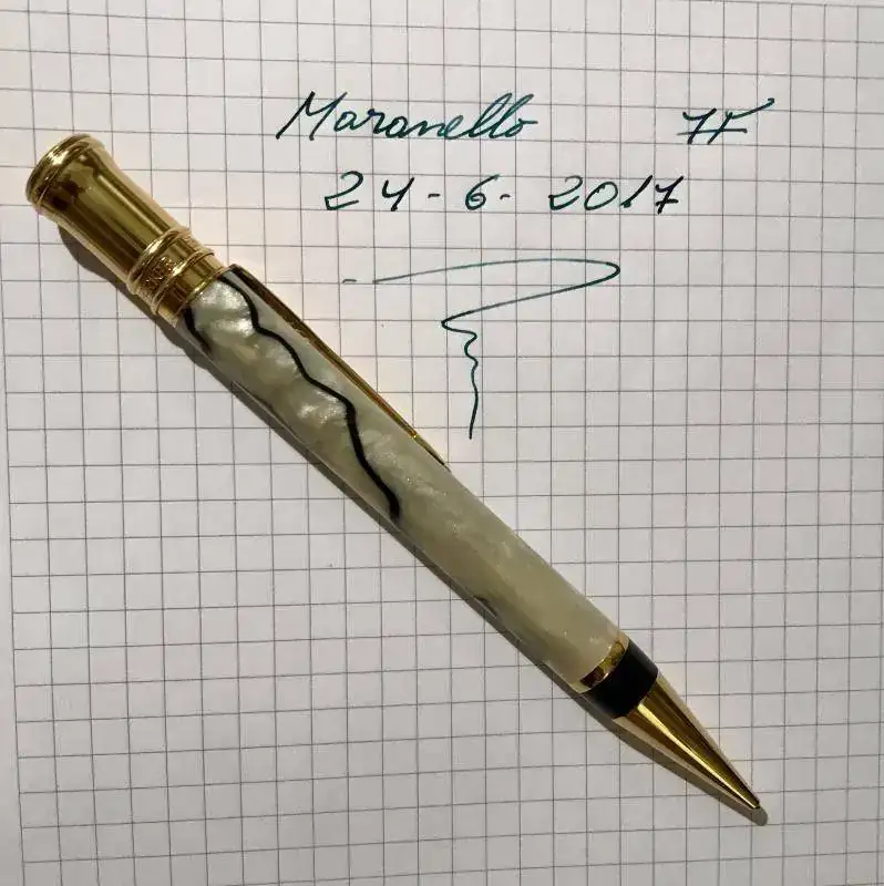 Forma parte de un juego que me compré hace años, y aunque la estilográfica la he utilizado frecuentemente, el portaminas lleva muchos años en el armario y nunca ha sido utilizado.