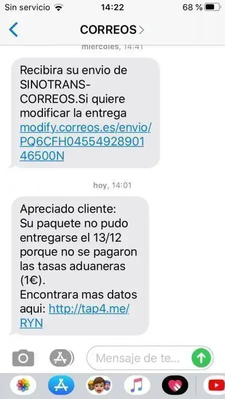 He recibido hoy este SMS de correos. No esperaba recibir nada más este mes de fuera de la UE por lo que me parece una estafa.