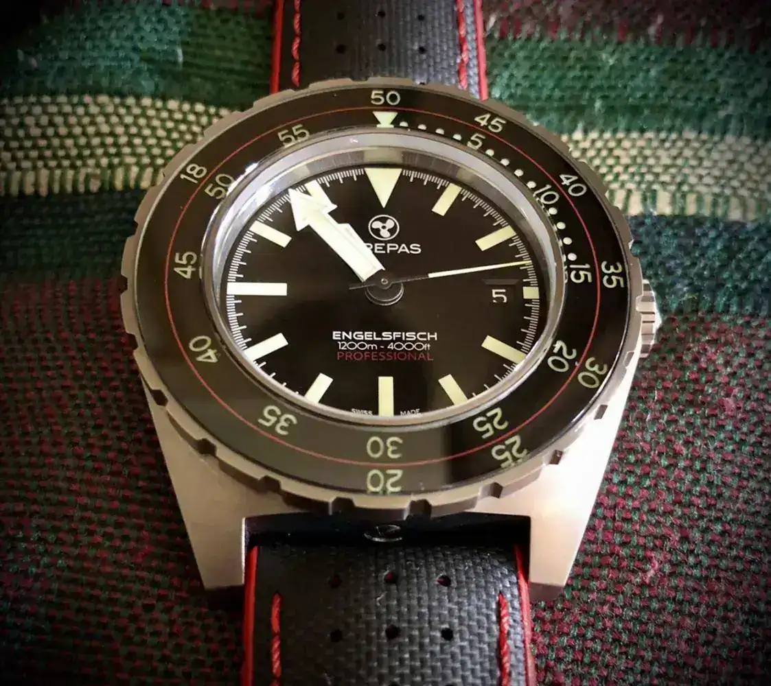 Bonita caja, me ha impresionado la correa verde con la línea roja, de que marca es?? Queda genial con el Hamilton.