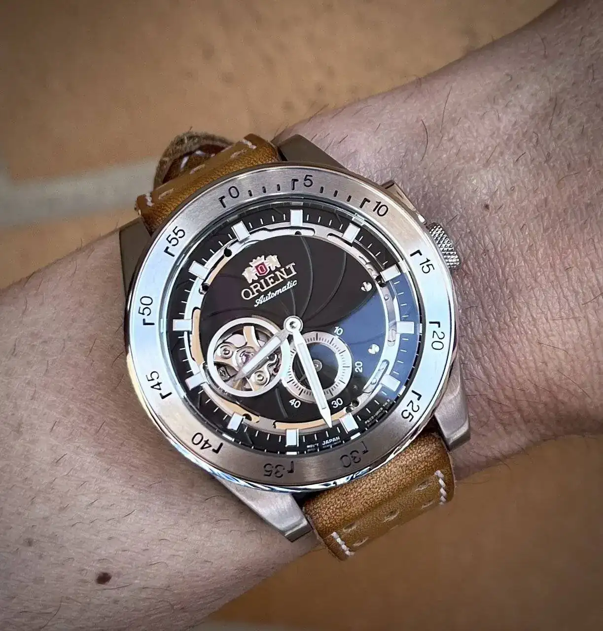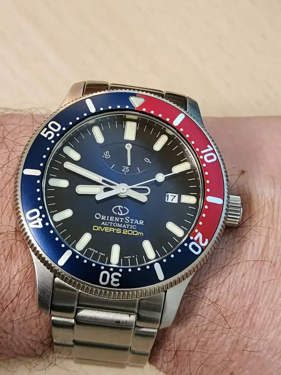A mí en su día me encantó, wr 100M con coronas roscadas y firmadas en altorrelieve las dos, zafiro AR, armis completamente macizo, el mejor lumen que he visto, ni un fallo de acabado en toda la pintura de la esfera y regla de cálculo, con todo lo que tiene y pintado sobre guilloché, además siendo un GMT y Reserva de Marcha. Calibre decorado, agujeros en las asas para desmontaje fácil, no le falta nada. Es apabullante para no ser un Star, y claro, todo eso había que pagarlo. Y costaba poco al final en las tiendas, pero aún así era caro para lo que la gente estaba hace 10 años dispuesta a pagar por un Orient.