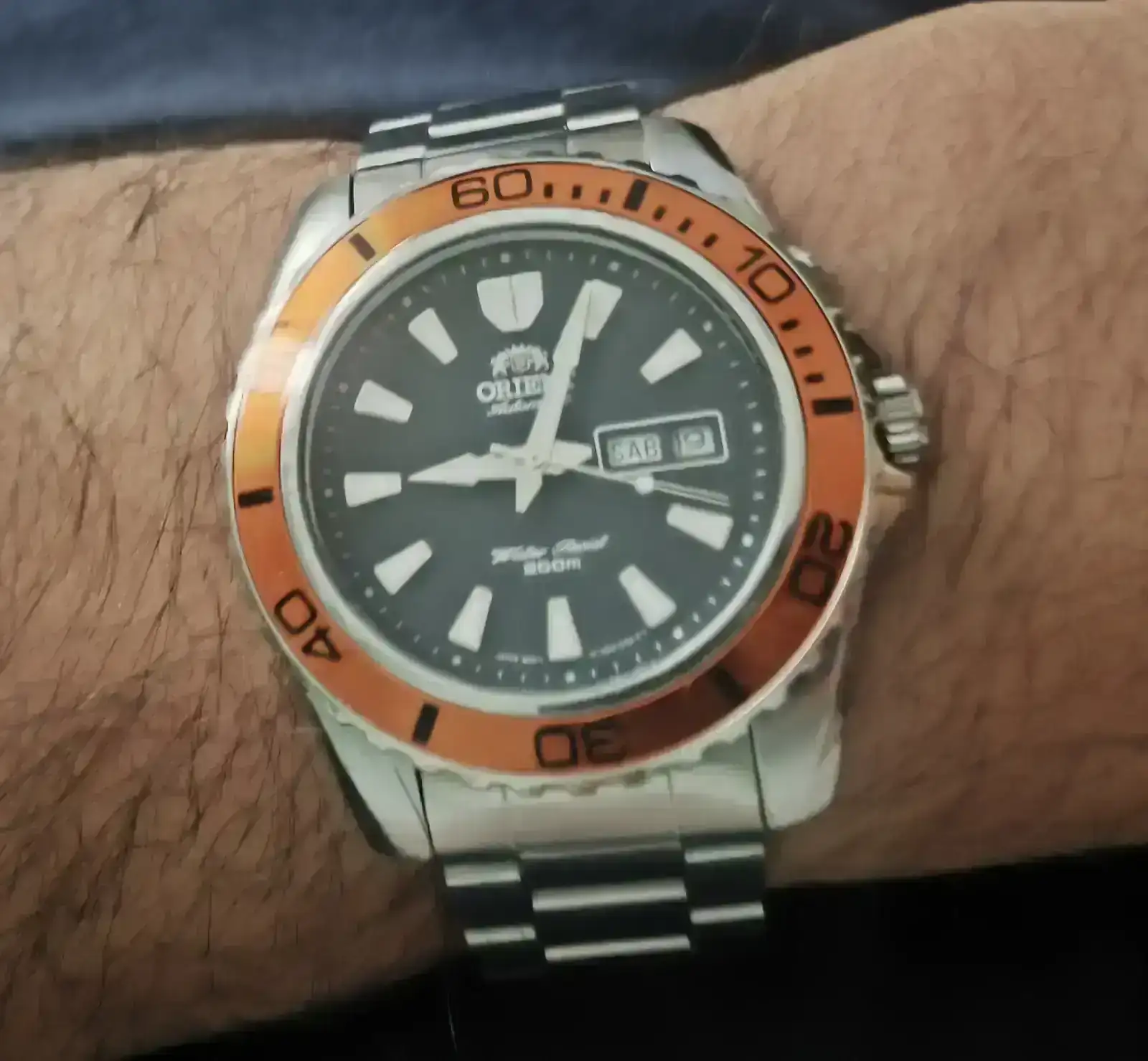 Que relojazo en todos los sentidos, si no me equivoco el Mako XL, lo tuve en blanco-crema con bisel en verde, un espectáculo, lo vendí porque me estaba enorme pero que belleza..