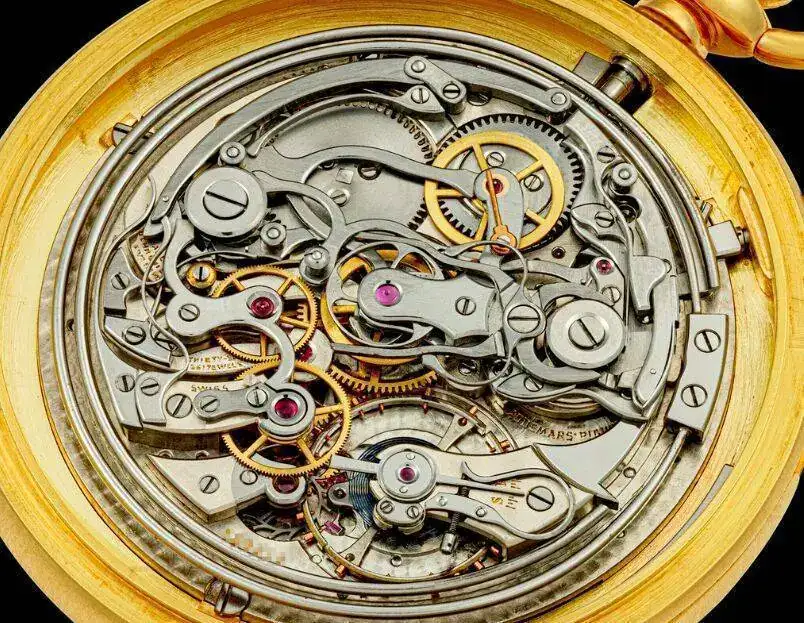 Izquierda: Un Audemars Piguet Ref. posiblemente único. Reloj de bolsillo cronógrafo 25630 gran complicación, numerado 001, oro de 18k y engastado de diamantes, con calendario perpetuo repetición de minutos, crono ratrapante de 60 minutos, indicador de año bisiesto y fases lunares. (Estimación: 550.000-1.100.000 HK$)