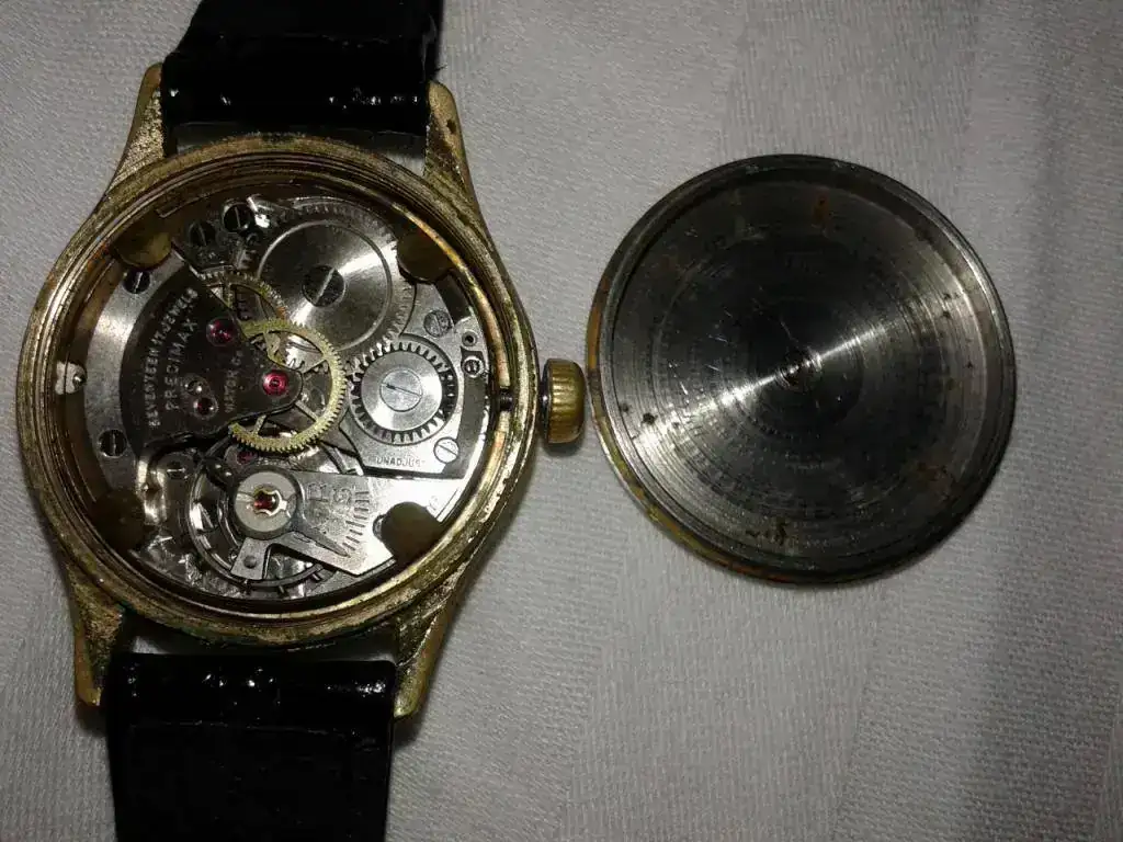 Hola a todos, vendo este reloj mecanico a cuerda vintage de los 50? no se exactamente la fecha de fabricación, lleva un mecanismo a cuerda CALIBRE 465 PRECIMAX 17 JEWELS SWISS MADE la marcha es buena pero seria aconsejable la revisión por un relojero competnte, el cambio de hora hay que hacerlo con cuidado pues a veces la corona no responde, por lo demas es un reloj muy bonito con una correa en unas condiciones 8,5 de 10, mensajes por privi o por whatsapp al 6''''06'026-------<<<<<< 889, gracias a todos por leer y a RE poor el espacio.