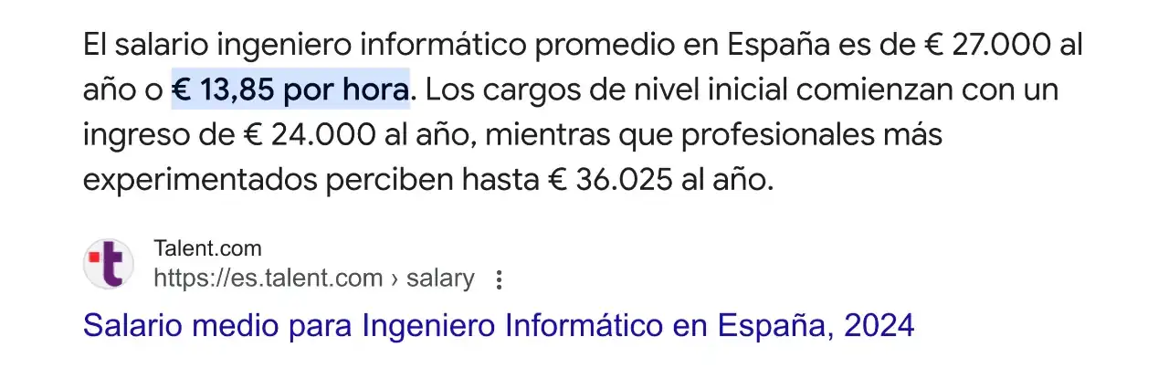 Creo que no has echado buenas cuentas. El autónomo no tiene la ventaja de escala en sus costes fijos y, sobre todo, si quiere sobrevivir tiene que imputar también su coste ocioso. Más cercano a la realidad es comparar con servicios de reparaciones. ¿Cuál es el precio/hora del que viene a reparar la lavadora? Diría que anda más cerca de 100€ que de esos 13,85€ que pones.Tú crees?. Ese trabajo no lleva más de una hora, y el 99% es mano de obra, y si consideramos que el 25% es imputación de gastos generales y amortizaciones, que ya me parece, y comparamos, por ejemplo,