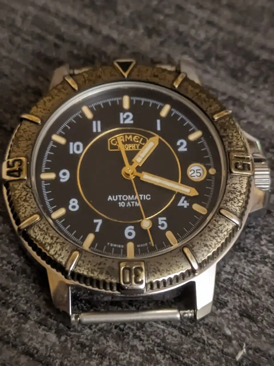 Se ve muy limpia la maquinaria y las cabezas de los tornillos en esa ETA2824 con Novodiac, imagino que nunca lo han revisado. Yo tengo otro Camel casi igual (de los 90´).Este el es reloj en cuestión Ver el archivos adjunto 2934557Ver el archivos adjunto 2934558