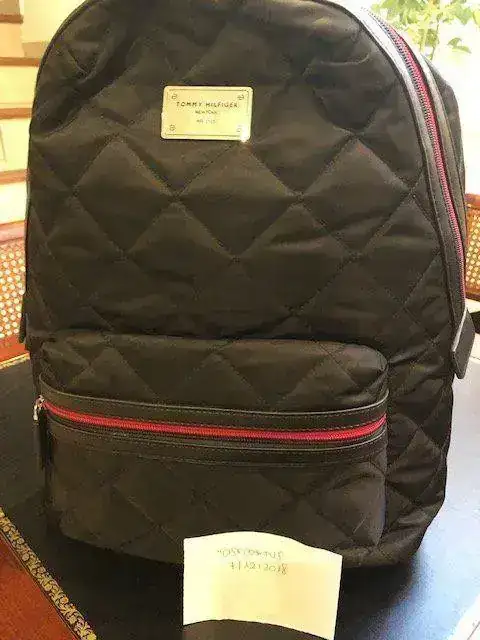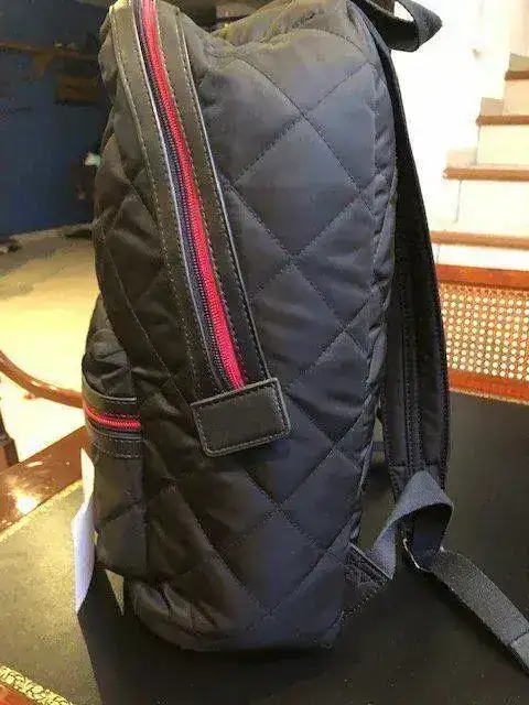 Vendo una preciosa mochila de la marca Tommy Hilfiger en un nylon acolchado similar al de las chaquetas Husky en azul muy oscuro (el color no sale bien en la foto porque es un azul muy profundo y bonito) con detalles en rojo en cremalleras y forros y chapa de la marca. Está completamente nueva, sin manchas ni nada, es unisex y el tamaño es 40 por 33 por 15 aproximadamente, con capacidad para un ordenador portatil de 13", ipad y multitud de cosas. Tiene numerosos bolsillos y compartimentos interiores y un bolsillo exterior.