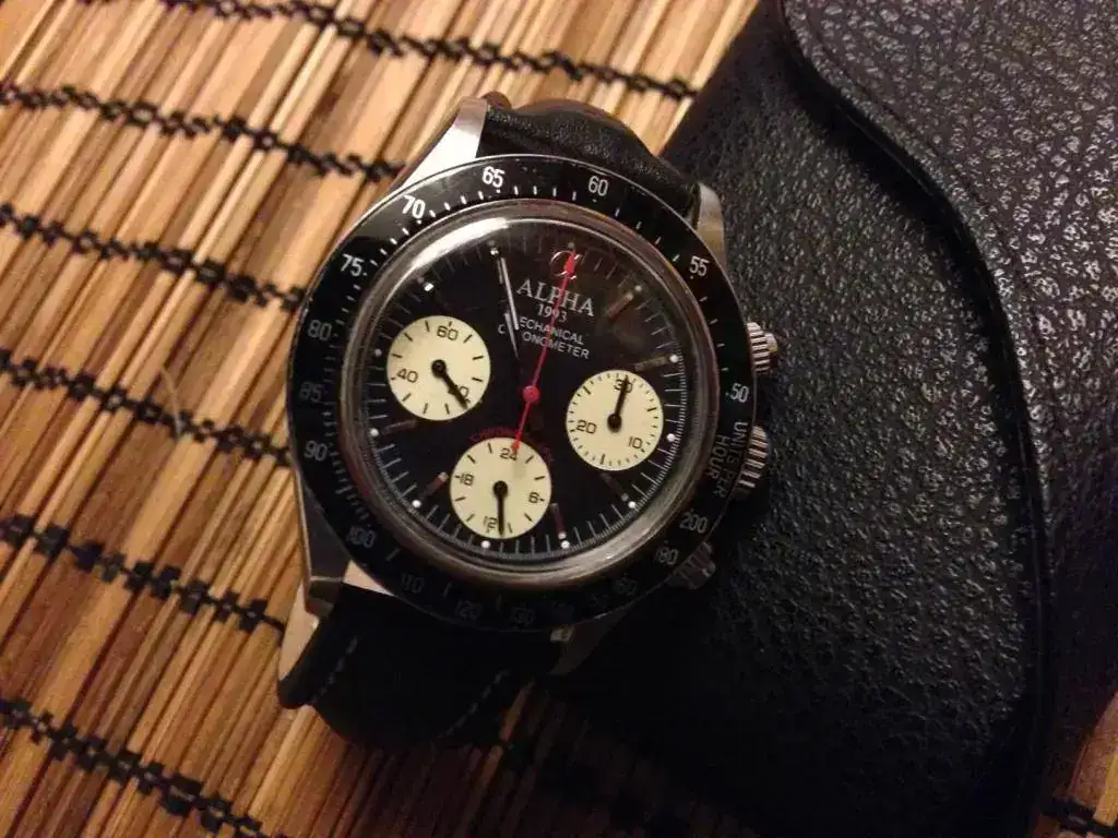 Por absoluta falta de uso vendo este precioso crono de carga manual ALPHA, tiene ligeras marcas de uso, pero está en muy buen estado y carga y funciona perfectamente. Es de 40 mm. sin corona, aunque aparenta algo más. Se envía con la funda de origen, papeles y dos armis, a parte de la excelente correa de piel con poco uso que monta actualmente. El precio es de 59 Euros envío urgente por Nacex incluído!!! Las fotos como es habitual magnifican los defectos y minifican la belleza de este asiático más que resulton.