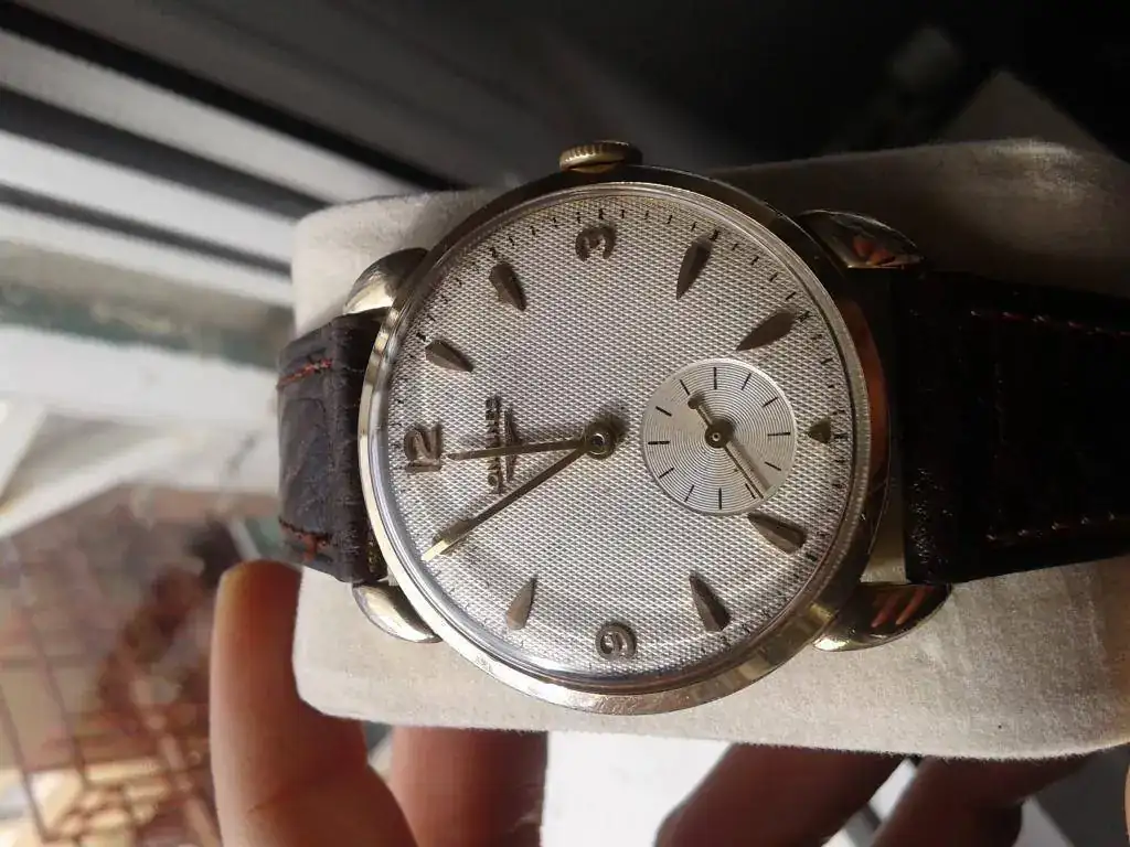 La caja tiene un buen tamaño para los años de los que hablamos, unos 39-40 contando corona, digamos que un tamaño más que generoso y queda muy bien en la muñeca. El chapado de oro sufre desgastes en las patas, como puede verse en las fotos. Interesados contactar por mp. Gracias por leer y al foro por el espacio.
