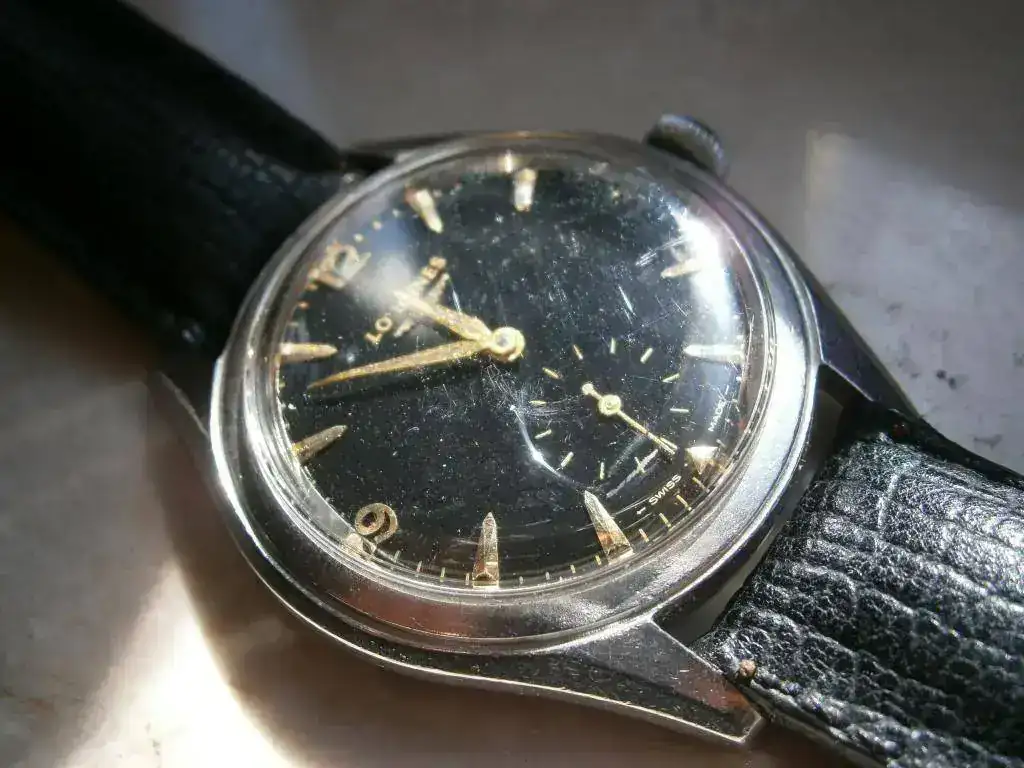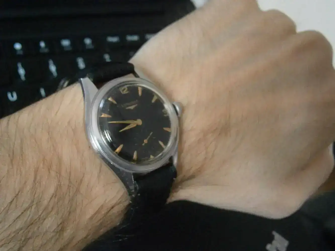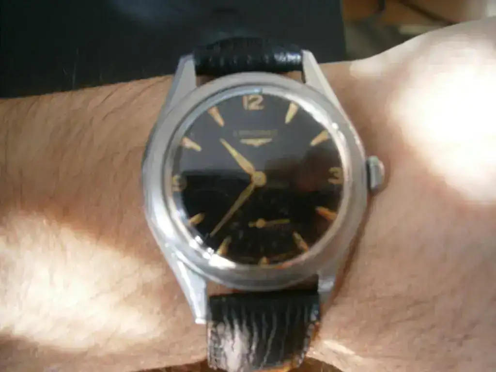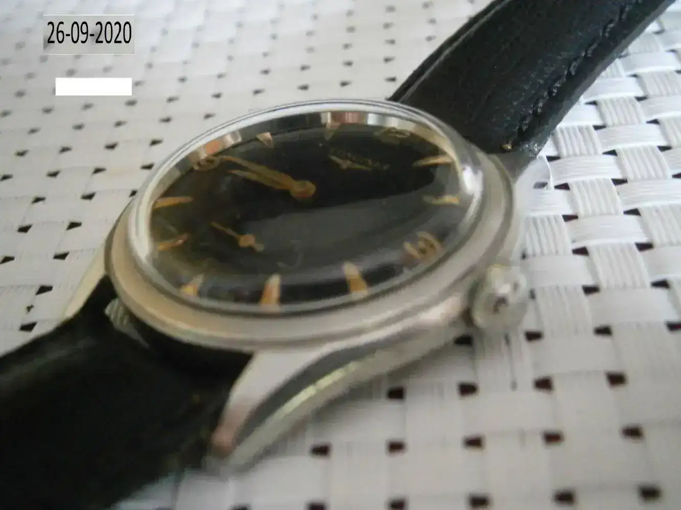 Comprado aquí en el foro. Lo mas destacable es el diametro de la caja que casi llega a los 38mm,lo que suele ser poco comun en este tipo de relojes.Con marcas normales de uso en caja y plexi, pero en buen estado y funcionando.