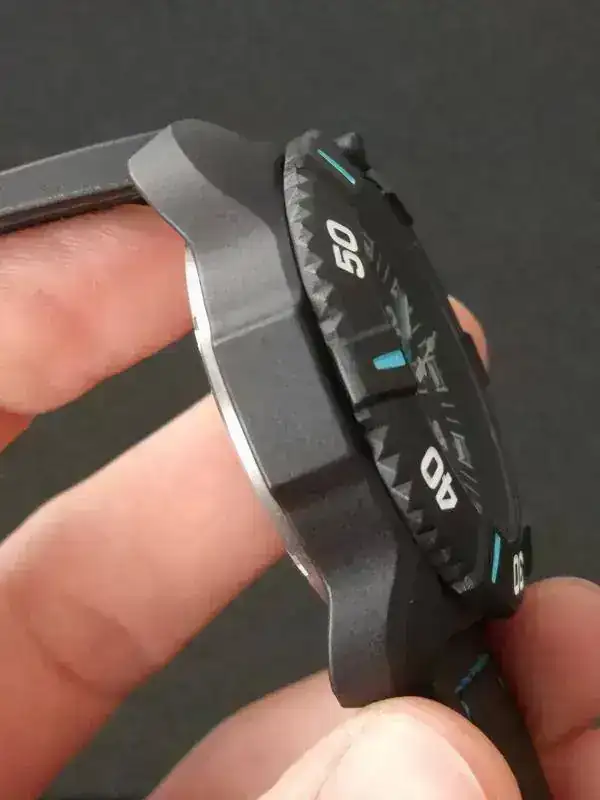 La corona tiene un agarre perfecto con un estriado que le da un aire más deportivo. Su bisel es perfecto para controlar tiempos de inmersión o de lo que se quiera.