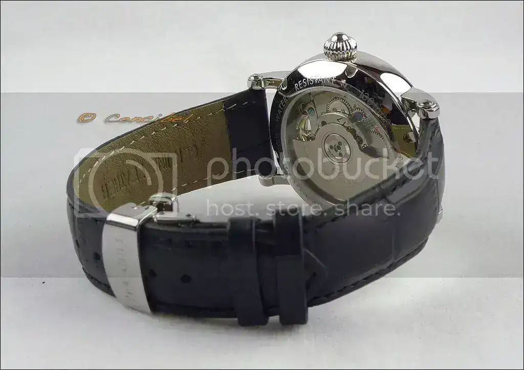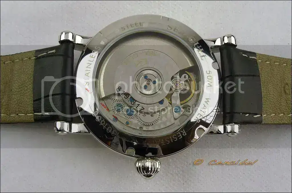 Este reloj cuenta con parte de la maquinaria visible a través de la esfera, una original característica que tiene es el movimiento