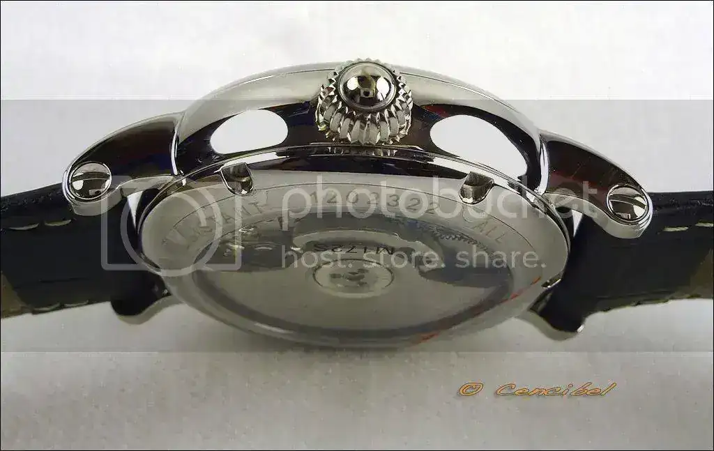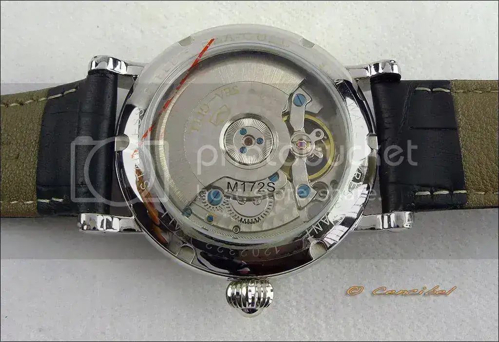Este reloj cuenta con parte de la maquinaria visible a través de la esfera, una original característica que tiene es el movimiento