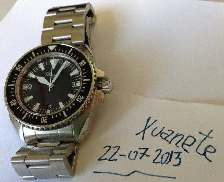 Cambiadas las agujas originales (plongeur, que se entregan como extra) por otras blancas en relojería especializada, con la consiguiente revisión completa y entanqueidad realizada, hace año y medio.