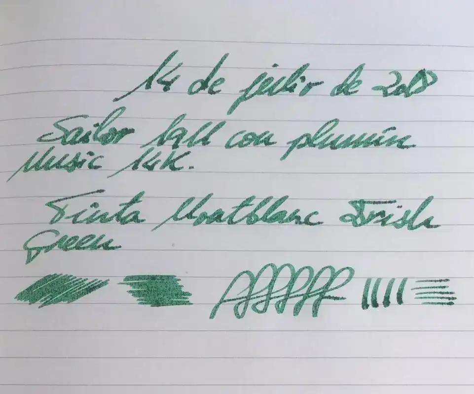 Hoy la cargo con Montblanc Irish Green y el resultado es el que se ve en la foto: tiene como restos sólidos. Minipuntos que aparecen al escribir.