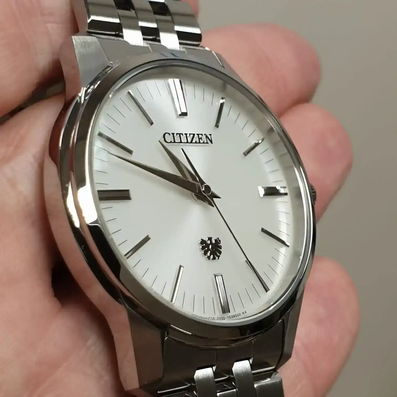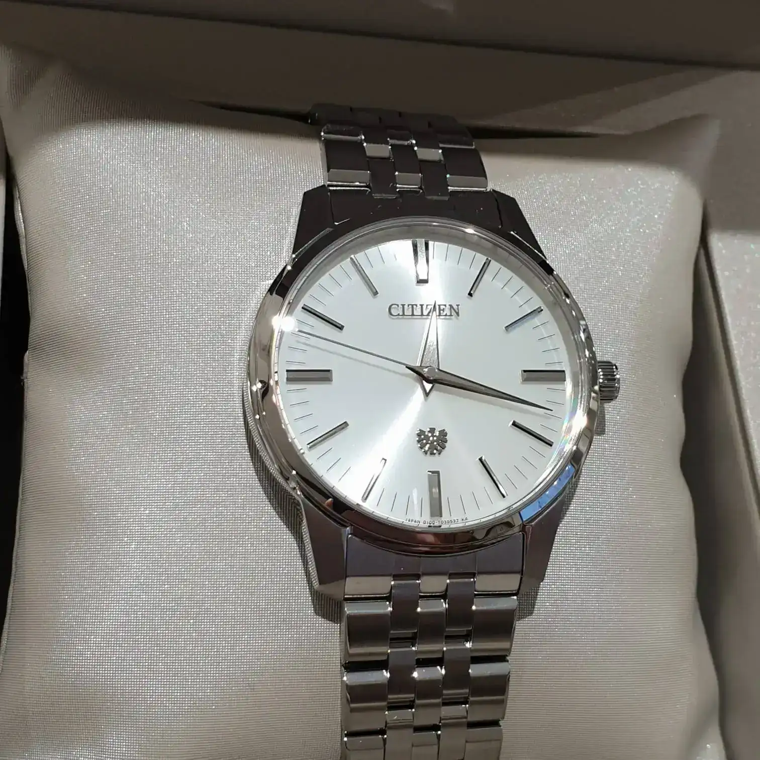 Impresionante máquina. Seguro que la disfrutas tanto o más que comprando un automático de gama alta por ese precio. No sabía que Citizen alcanzaba esos niveles y esos acabados.casi a 8000€ me salió el cabron con aduanas y el puto Iva de los cojones.... pero yo lo miro ahora mucho y no solo para ver su perfecta hora sino para ver sus perfectos acabados zaratsu al nivel de Grand seiko, y lo que la gente no sabe de este reloj es que todo su metal es tan duro como el Cristal de zafiro... vamos que es inmune al desgaste..... es un cuarzo desde el punto objetivo perfecto en todos sus aspectos pero solo hay 100 unidades y para Japón.... ósea que traerlo aquí y gozarlo en la muñeca sale muy caro.... en realidad dicen que es un Segundo al año pero yo por mi practica con los modelos Citizen que siempre van al 40% de sus máximas tolerancias imagino que dicen 1 Segundo al año por curarse en Salud... porque si te dicen retrasa 2 décimas al año te hecharias a reír jajajaj