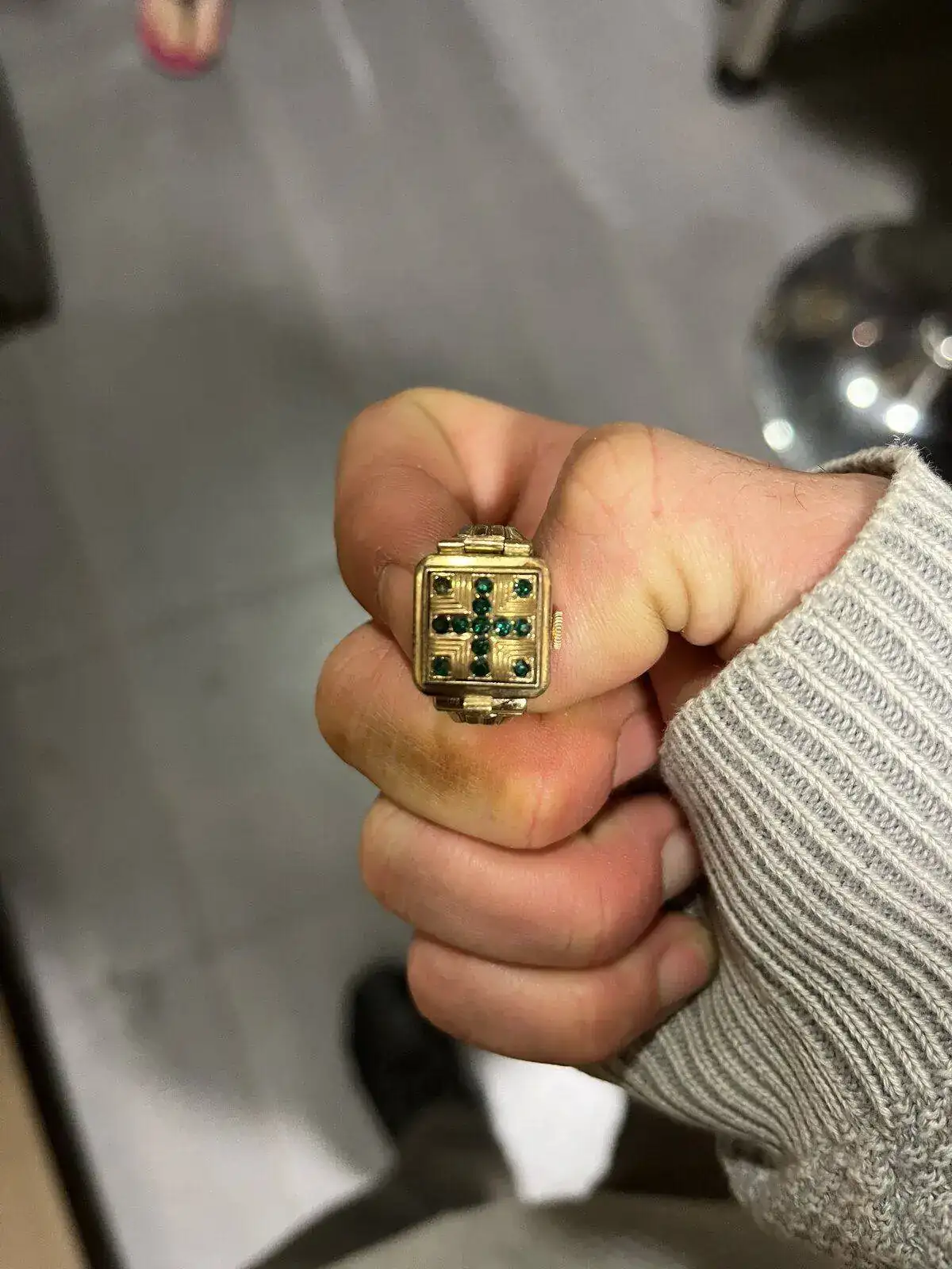 Hola!! Esta pregunta es bastante compleja. Tenemos desde hace años este reloj-anillo en el cajón y ahora me ha picado el gusanillo de saber más de él. ¿Alguien sabe el fabricante y/o composición o maquinaria?