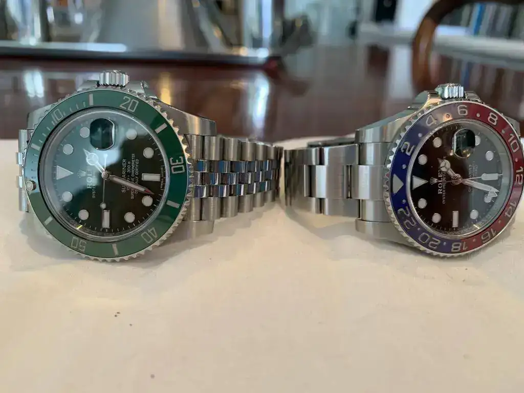 Yo hoy me he puesto a probar y....aquí tenéis el GMT PEPSI con el brazalete del GMT BATMAN. Eso si, al batman no he podido colocarle el jubile. No se si por falta de paciencia o porque los pasadores son distintos. El Oyster lleva unos pasadores gruesos y el Jubile muy delgados!!!