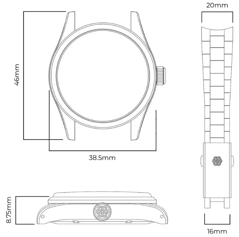 Estos Traska de 36 mm al tener un ancho de asas de 20 mm pueden hacer parecer la el conjunto caja+asas más voluminoso, y llenar más la muñeca. Con una longitud de asas total de 44 mm verás algo de brazalete por arriba y por abajo (que es lo que me gusta, particularmente).