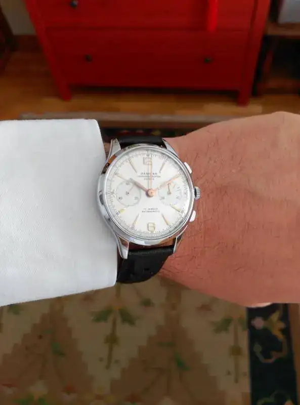 2. Ya que hablamos de tamaños, es cierto que, en simple golpe de vista, los 34mm más o menos de aquellas épocas se ven pequeños. Vaya, mi reloj "habitual" es un Omega de 39 y me parece pequeño cada vez que lo "recupero" después de unos días con el Sumo de 45mm. Pero es justo eso: una apariencia subjetiva que desaparece a los pocos momentos. Mira cualquier película de los años 50 y dime que les quedan mal esos relojes. Yo tengo un Longines de 1961, también unos 34mm y queda, simplemente, perfecto: el diseño es el que es y el tamaño el que le corresponde, ni más, ni menos. De todas formas, buscando, buscando, tampoco es difícil encontrar relojes de época en 36mm o cronógrafos (algunos realmente precisosos) de 38mm.