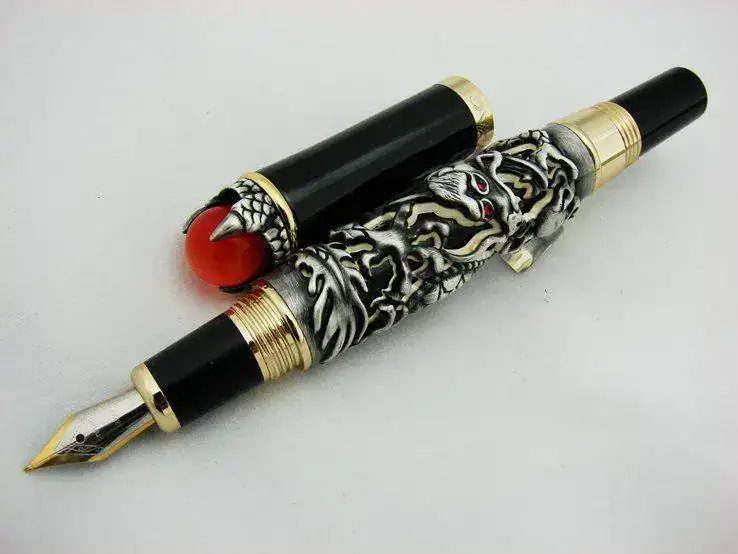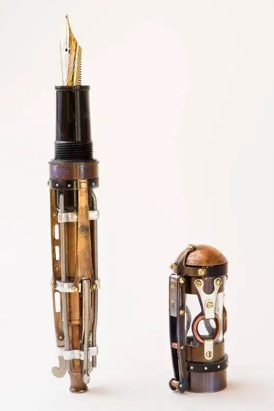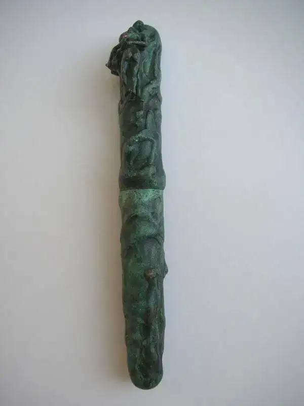 No solamente las grandes marcas llenas de glamour producen especímenes como los seleccionados en las páginas precedentes. En esta ocasión, un particular, sin encomendarse ni a Dios ni al Diablo ha decidido que el mundo necesita contar con una de sus obras de arte y se le ha ocurrido desguazar una indefensa Pelikan y secuestrar su plumín, para insertarlo en su obra magna, que a continuación podemos disfrutar en unas fotos del orgulloso autor.