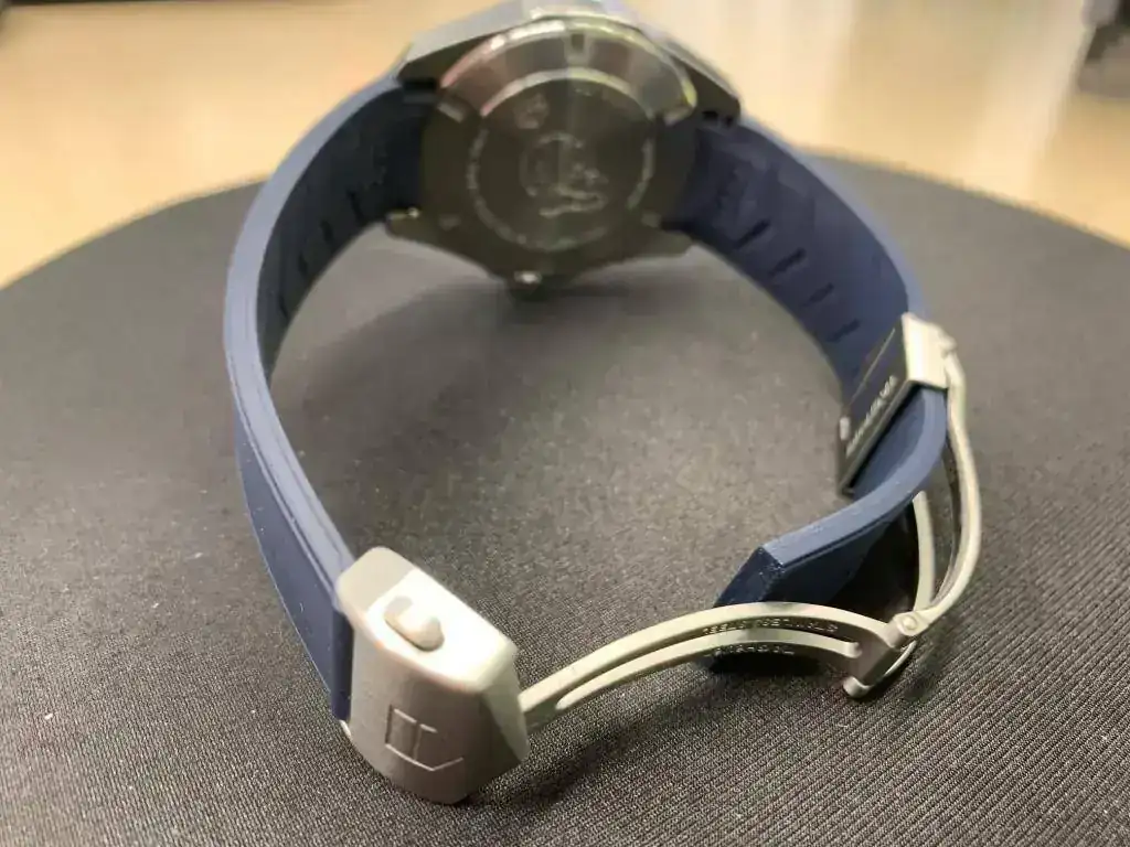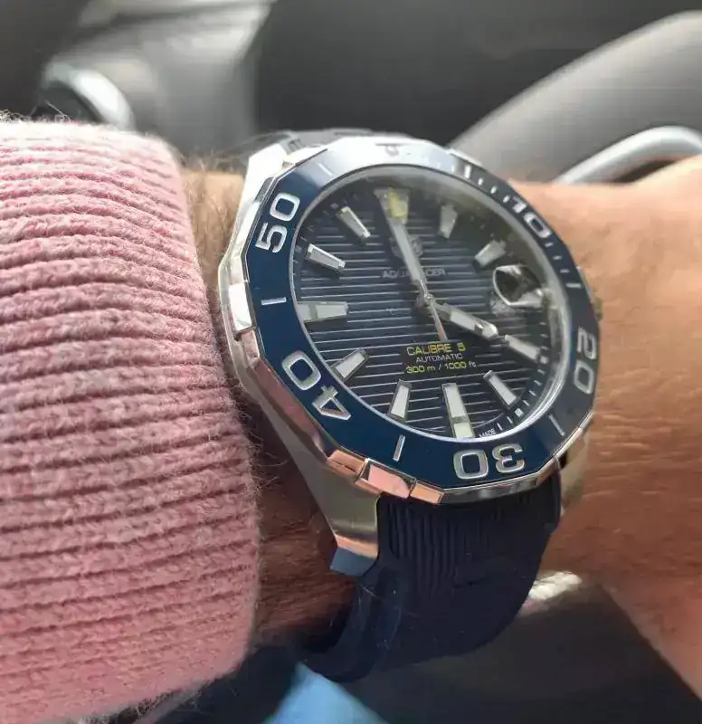 Hace unos días adquirí una correa nueva para mi Aquaracer, pero hasta hoy no la he podido estrenar. Creo que le cambia completamente la imagen al reloj, haciéndolo más juvenil y veraniego. El único inconveniente que le veo es que la correa era algo grande para el tamaño de mi muñeca (no sé si existen medidas para estas correas), por lo que tras ajustarla al máximo posible (aun quedándome un poquito más holgado de lo deseado), el cierre no queda justo en medio de la parte trasera de la muñeca, si no más bien a un extremo de la misma.
