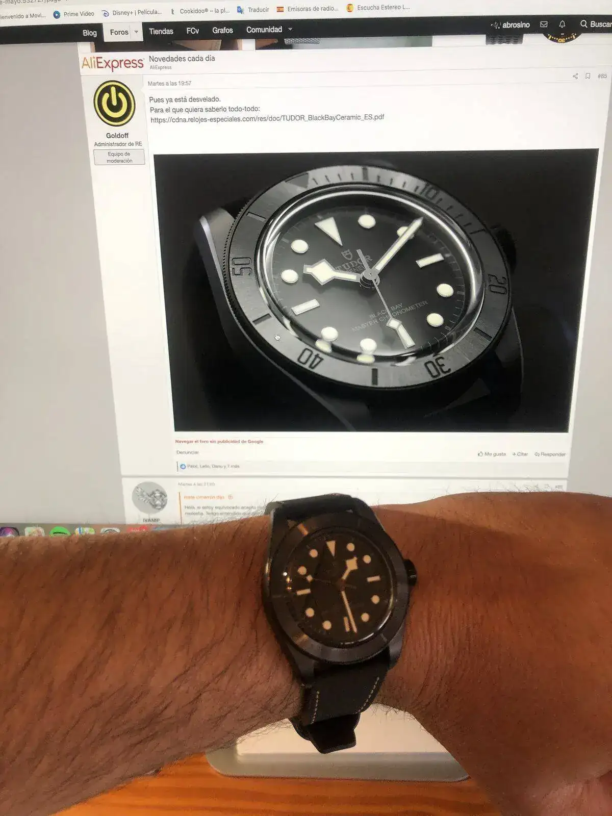 Lo que menos me gusta son los cierres tanto del caucho como de la nato, son súper incómodos de abrochar, además el caucho viene hacia adentro con lo que se traba cada dos por tres, diréis que tiene solución y tenéis razón, se da la vuelta y punto, bufff, no lo he pasado peor en mi vida con una correa, va súper justa y no queda un hueco para la herramienta, media hora de sudores y una mariquita en la cacha me ha costado, pero bueno, siendo cerámica se nota poco.
