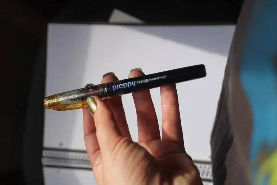Aquí está la señorita ANTES, la amarilla transparente con su cartucho de tinta amarillo pollo: