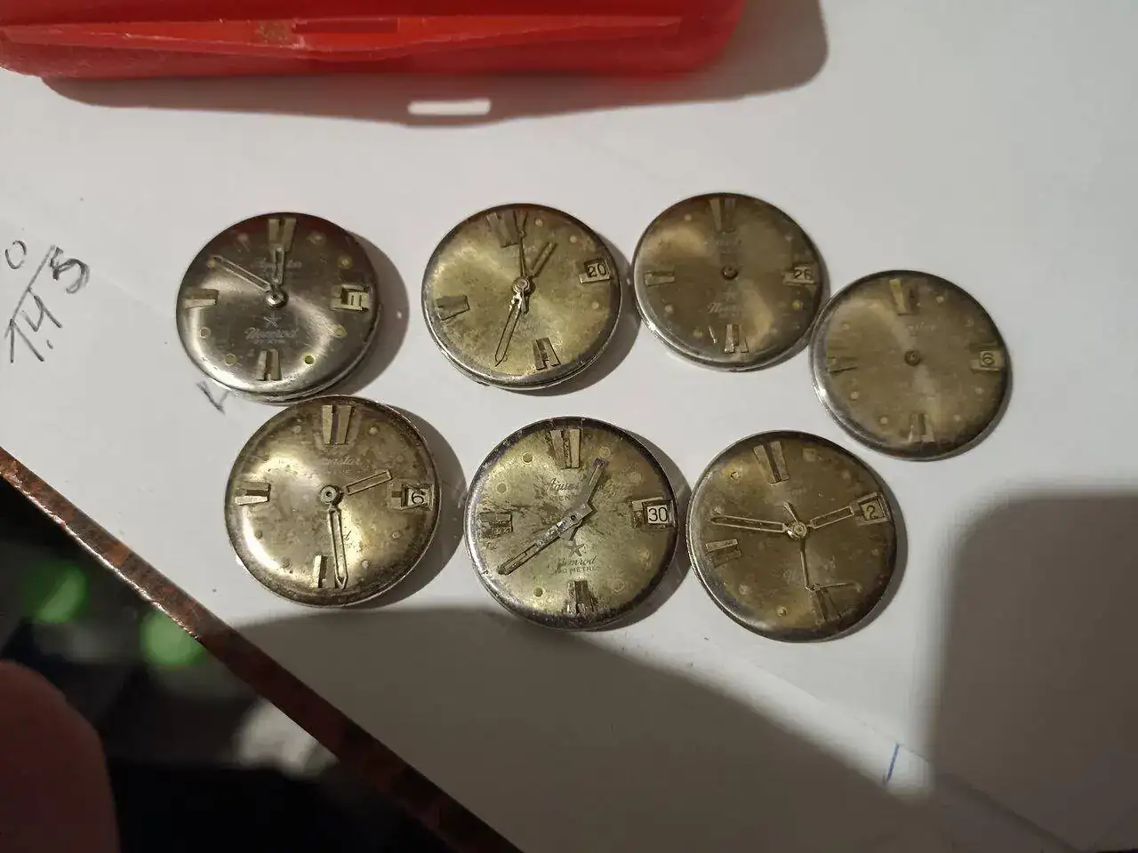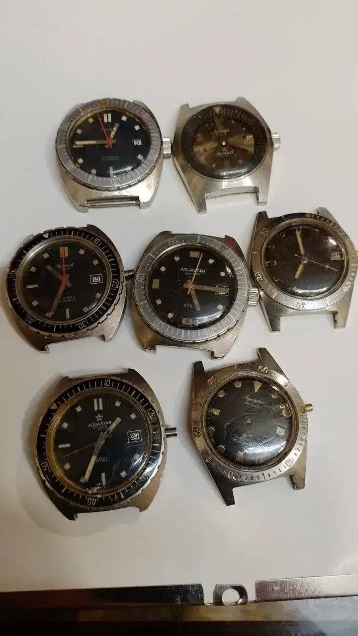 Hoy tengo el gusto de enseñaros el lote que e pillado de relojes aquastar y nemrod y compartirlo con ustedes!! Me hace ilusión compartirlo,a un par de ellos le falta corona y a un aquastar 1701 la esfera está borrada pero tengo esfera para poner de reemplazo y tengo coronas etc... Ya os mostraré cómo quedan acabados!!! Llevo tiempo sin compartir nada y ahora me estoy poniendo a full!!!! Espero os gusten y me gustaría saber vuestras opiniones un saludo a todos!!! Buenas noches!!!