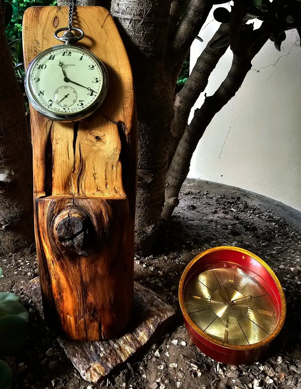Para terminar: Mi LONGINES de bolsillo (muy buena compra compulsiva –por el poco uso que se le pueda dar, le hice un pequeño exhibidor-) y el bello despertador JAEGGER suizo de mi abuelo, que lo acompañó sus últimos años de vida en cama (por motivos más onettianos que de salud).