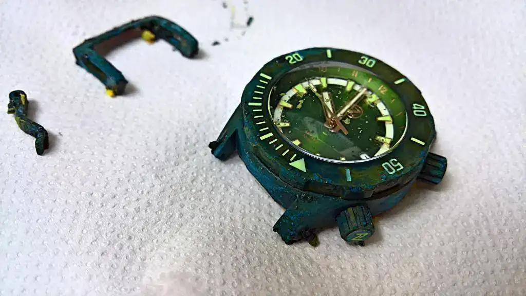 Sin tocar el amoniaco el reloj directamente, por supuesto. Esto es lo que he sacado de la bolsa tras unas 4 horas...:laughing1: