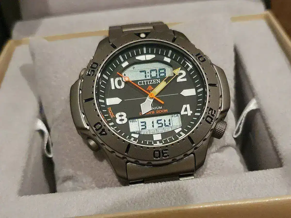 Ese reloj que pones en la foto tuvo un gran error de diseño, y es que el bisel es fijo y no se puede mover, cosa imprescindible en todo reloj de buceo que se precie, me extraña que Citizen la pífiara de esta manera, porque no estamos hablando de un Landscote del teletienda.