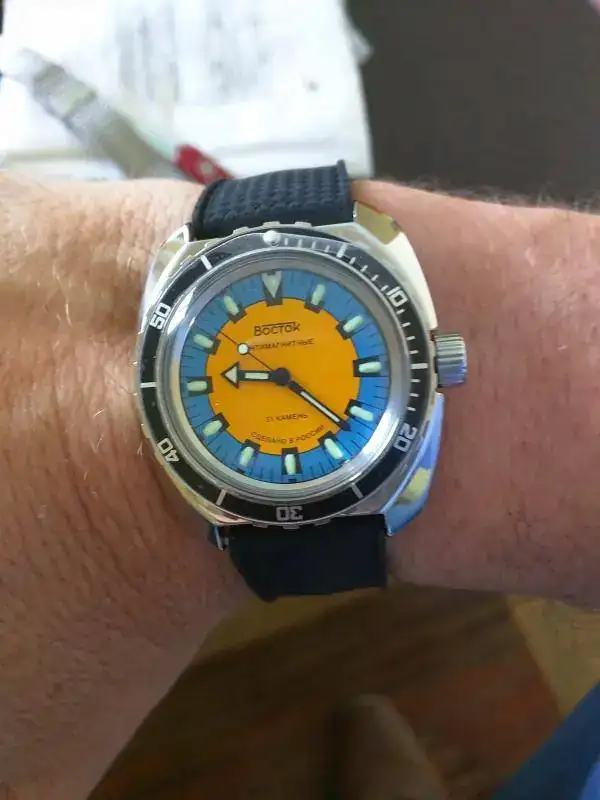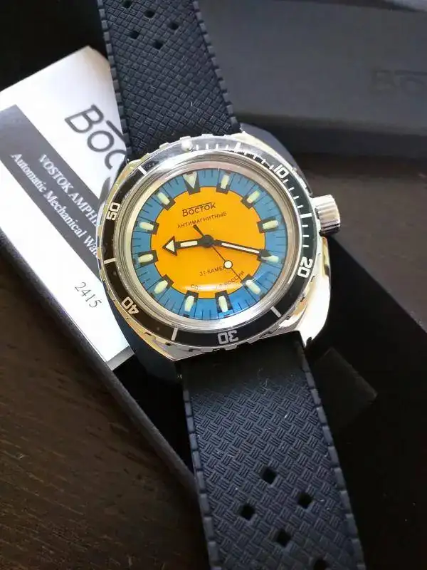 Buen día a todos! Por fin recibí mi primer rusito, el 093 está en casa. Me ha encantado y hasta la correa de silicona me gusta, tiene buen tacto. Saludos.