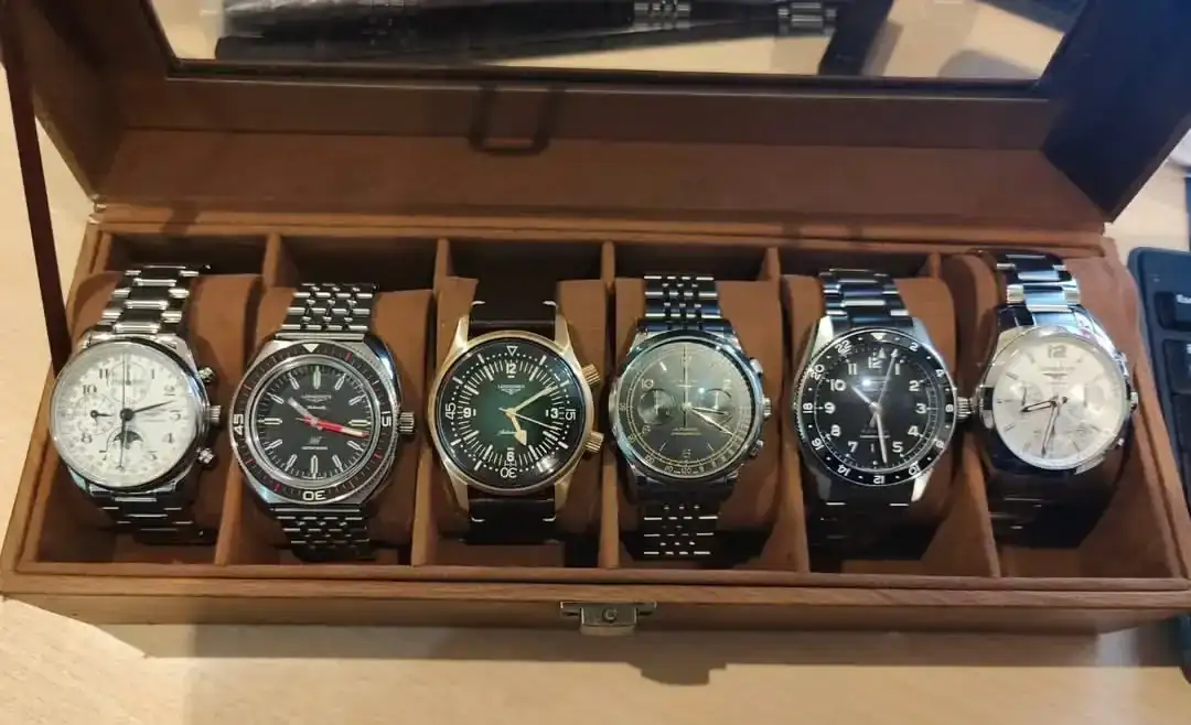 Te va a tocar comprar una caja más grande porque ahí falta el nuevo Legend Diver 😂😂😂😂 preciosa colección, de mis marcas favoritas junto a Tudor y Seiko.Mis longines, conquest crono, ultra-chrom, Legend diver, record heritage, zulú time y máster colección