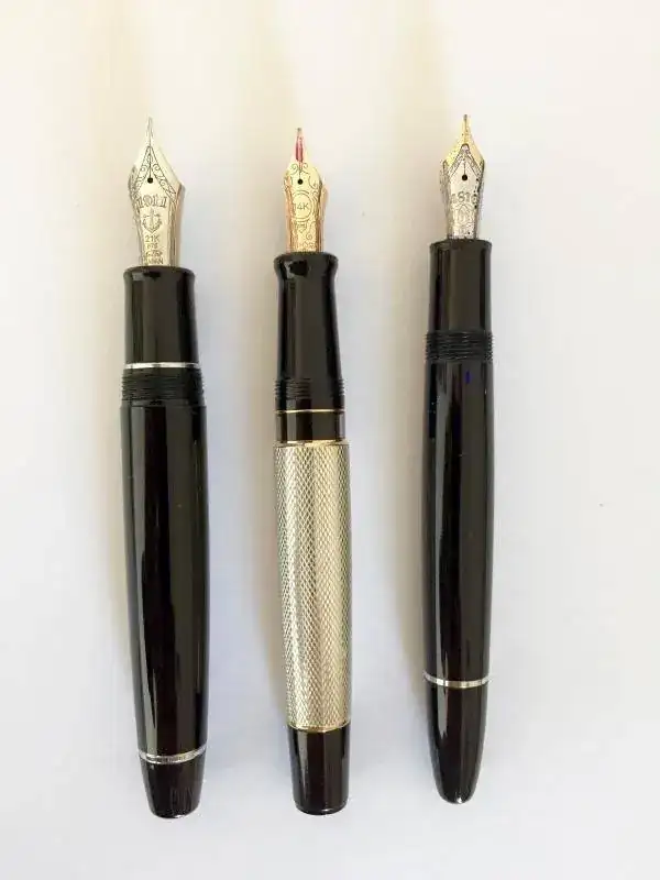 ¿Que pluma es la más pequeña de la tres? La respuesta parece evidente cuando la vemos entra una pluma "cachas", como la Sailor Pro Gear KoP, y la estilizada y atlética Montblanc 146...