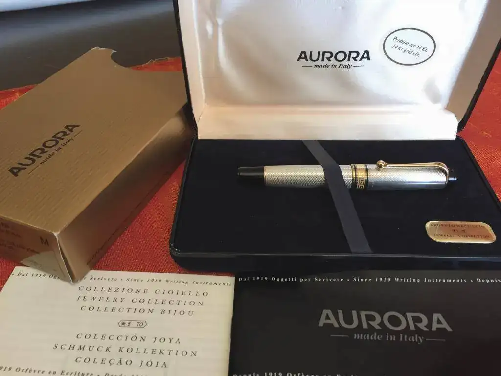 Simplemente deciros que quiero compartir con vosotros el gozo mistico en el que vivo sin vivir en mí desde que tengo conmigo esta preciosidad: una Aurora Optima con el cuerpo y el capuchón de plata (¡Ojito! quiero recalcar que lo único que quiero compartir con vosotros es mi gozo, al primero que se acerque a la pluma con mirada libinidosa le rajo el cuello pa' que no sufra).