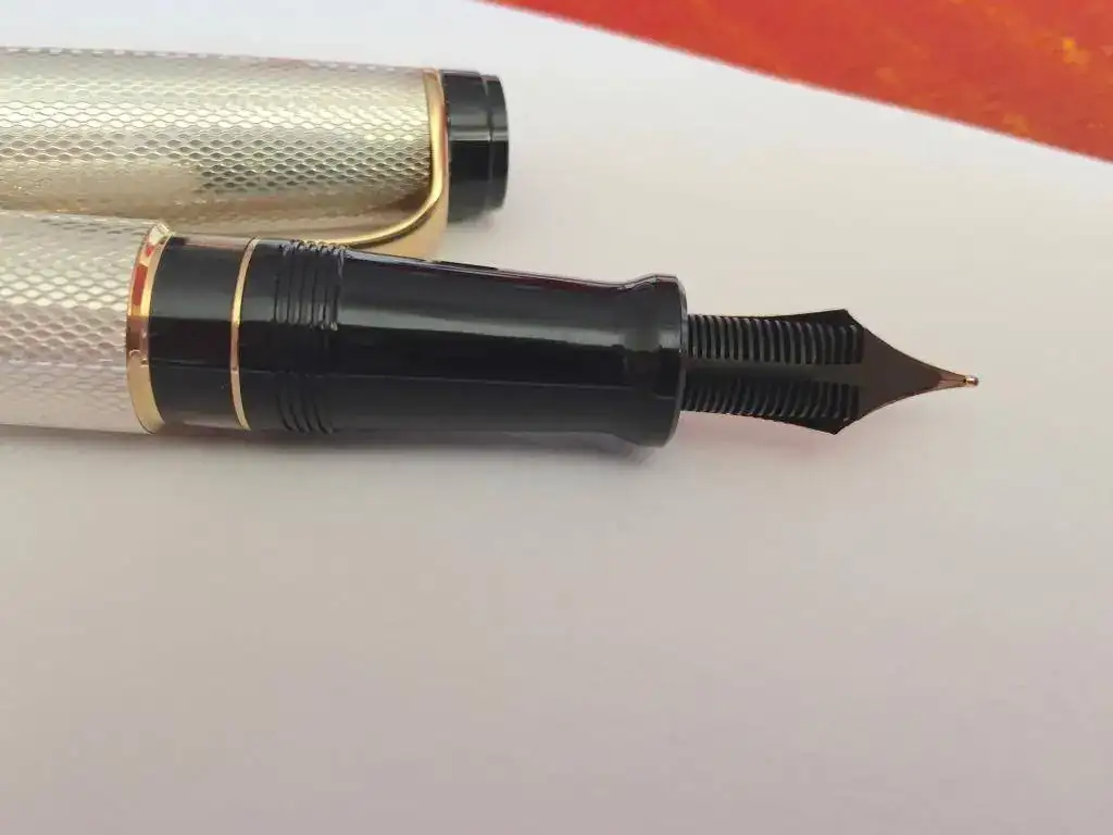 Resumiendo: Aquí se hace cierto el conocido refrán de "nunca digas de este agua no beberé", pues hasta no hace mucho yo abjuraba de las plumas fabricadas en metales preciosos considerándolas más propias de gustos estéticos pretéritos, pero lo cierto es que últimamente, no se si tal vez porque empiezo a tener a mis espaldas más tiempo preterito que tiempo futuro de frente o porque me ha surgido el gusto por los aires retros, me parecen muy bonitas las estilográficas (algunas, no todas) con partes del cuerpo en metales preciosos.