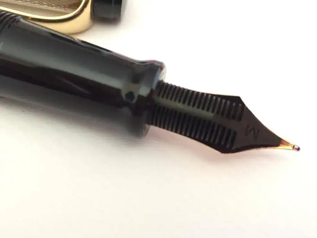 Es un punto M, y aunque al principio tendía más a ser un M justito tirando a F, la jugosidad del alimentador de ebonita ha paliado en gran parte esa estrechez de trazo.
