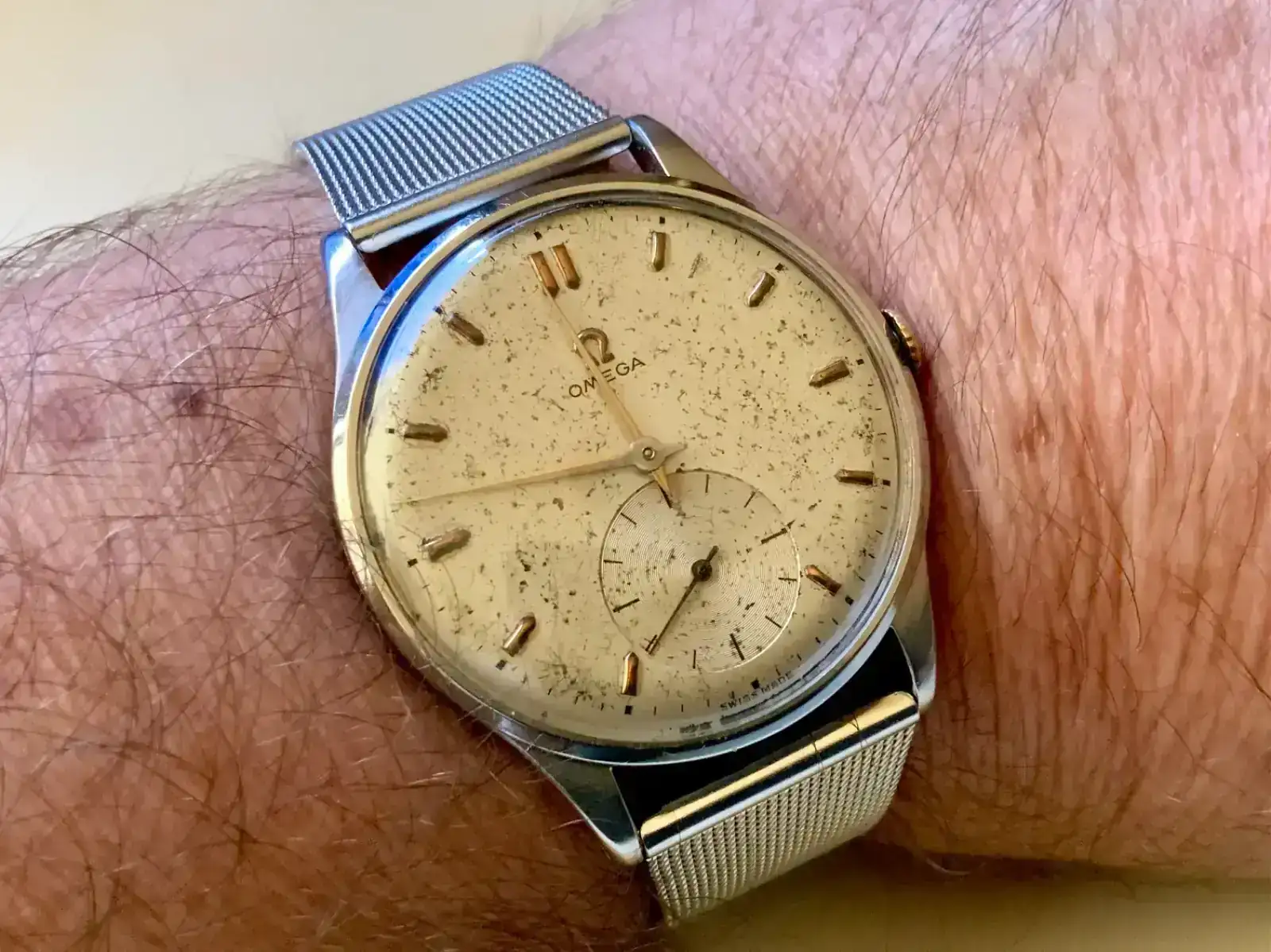 La cosa está ahora en que me gustaría cambiarle la pila por mi mismo, para limpiar la roña de la tapa con mimo, ver si funciona... si funciona lo acercaría a algún relojero o joyería para pulirlo y ya después me encantaría conprarle una cadena milanesa original de omega... o por lo menos una correa original, igual soy demasiado purista... no lo se.